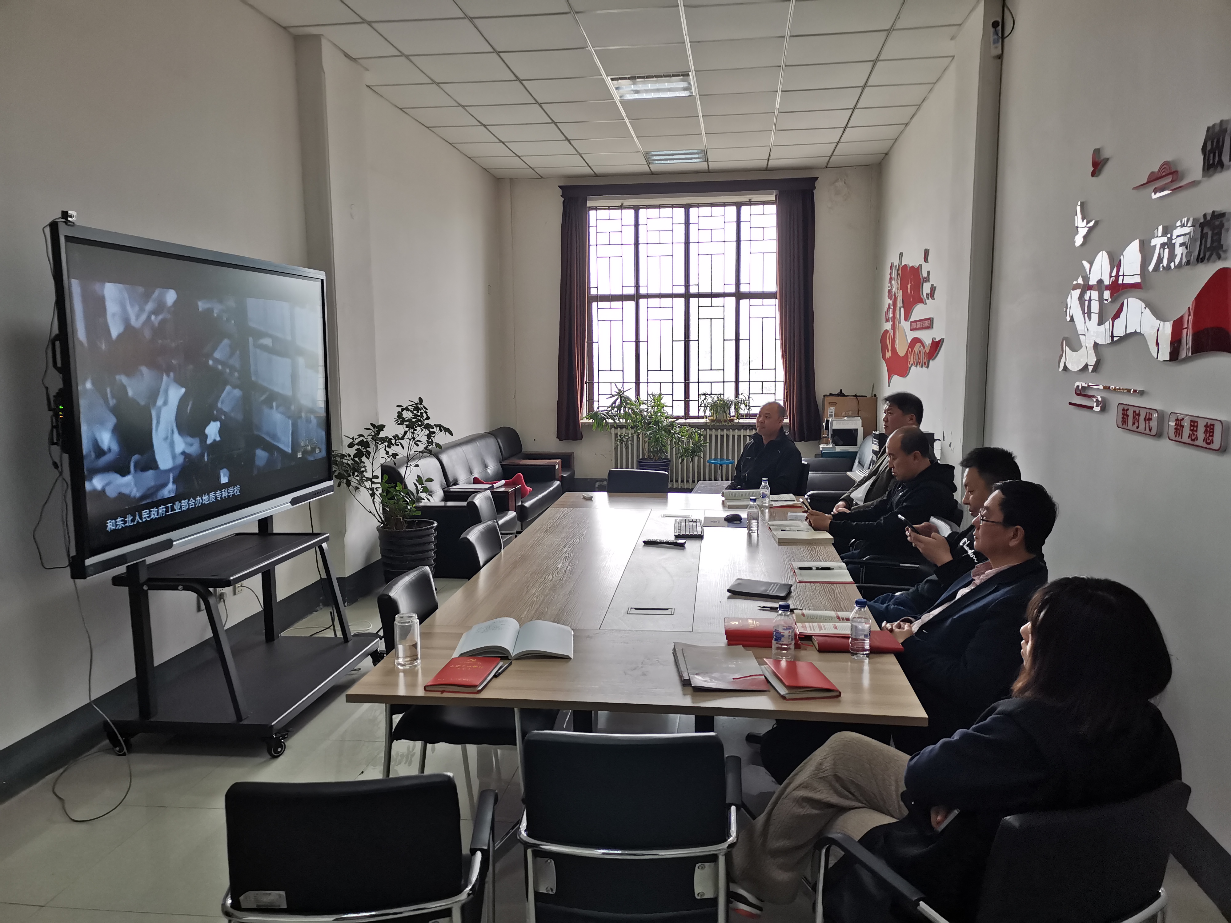2021年04月30日上午9时,yl23455永利仪电公司教工行政党支部在地质宫420开展主题党日学习活动,会议由公司教工行政党支部书记边江主持,公司党委书记邱增凯与支部成员参加会议。