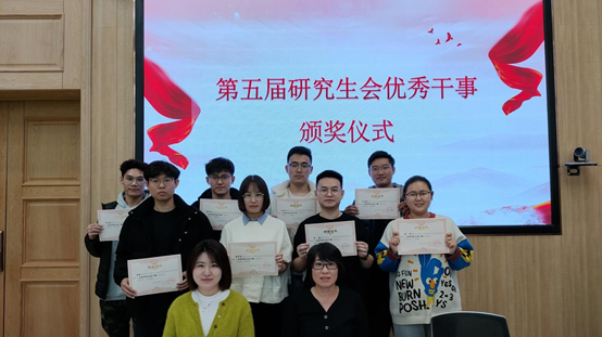 接下来,杨冬老师、杜晓夏老师宣读获得“优秀研究生会干事”荣誉称号的同学名单并颁发荣誉证书,为上一届研究生会主要员工干部颁发聘书,以表彰他们对yl23455永利研究生会做出的贡献。