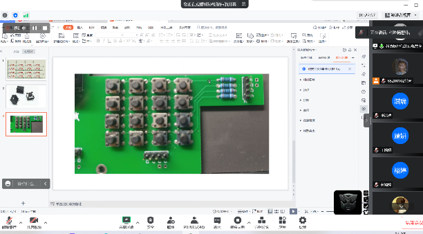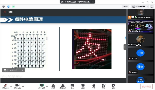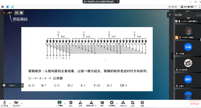 首先,杨智伟介绍了数电实践所需技能和数电实践的意义,使同学们对数电实践有一个简单的了解。然后,王靖妍进行数电实践模块组成介绍及焊接基础培训,系统讲解了数电实践扩展板的各个部分和焊接时的注意事项;接着韩钧鹏讲解数码管电路原理及其驱动方式;常芮通过生成一个汉字为例讲解点阵电路原理及其驱动方式;杨智伟主要介绍了4×4键盘扫描电路原理及其驱动方式,又通过实物演示,细致入微地讲解焊接电路的方法;于润坤介绍了上下拉电阻,共地等注意事项。最后,根据同学们提出的问题,科协成员进行了耐心细致的解答,为同学们答疑解惑。活动结束后,科协成员整理并发布了会议回放,帮助同学们巩固所学内容。