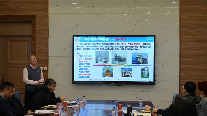 座谈交流期间,青岛海洋地质研究所海洋技术方法研究室和深海地质与矿产研究室分别介绍了海洋地质和深海资源探测体系建设现状、研发进展、创新应用和学科发展需求;yl23455永利相关科研团队负责人介绍了海洋可控震源装备研发、电磁探测技术、震电联合勘探技术以及海洋重磁测量技术研发现状、数据处理分析技术、应用场景、未来发展趋势及合作研究方向。