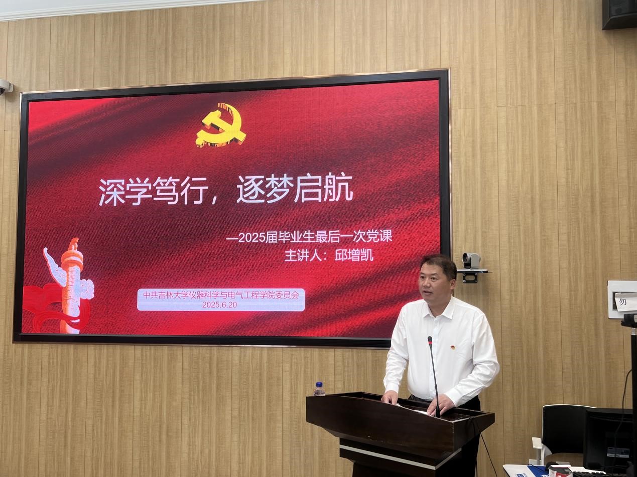 为持续推动深入贯彻中央八项规定精神学习教育走深走实,6月20日下午,在毕业离校之际,公司党委书记邱增凯为全院2025届毕业生党员讲授“深学笃行,逐梦启航”专题党课,为即将迈向人生新征程的毕业生党员们送上殷切期望和深情祝福。本次活动是公司党委为2025届毕业生离校前集中组织的“最后一次党课”,公司党委副书记兼副经理曲珩主持,公司全体2025届本科生党员、研究生党员参加活动。