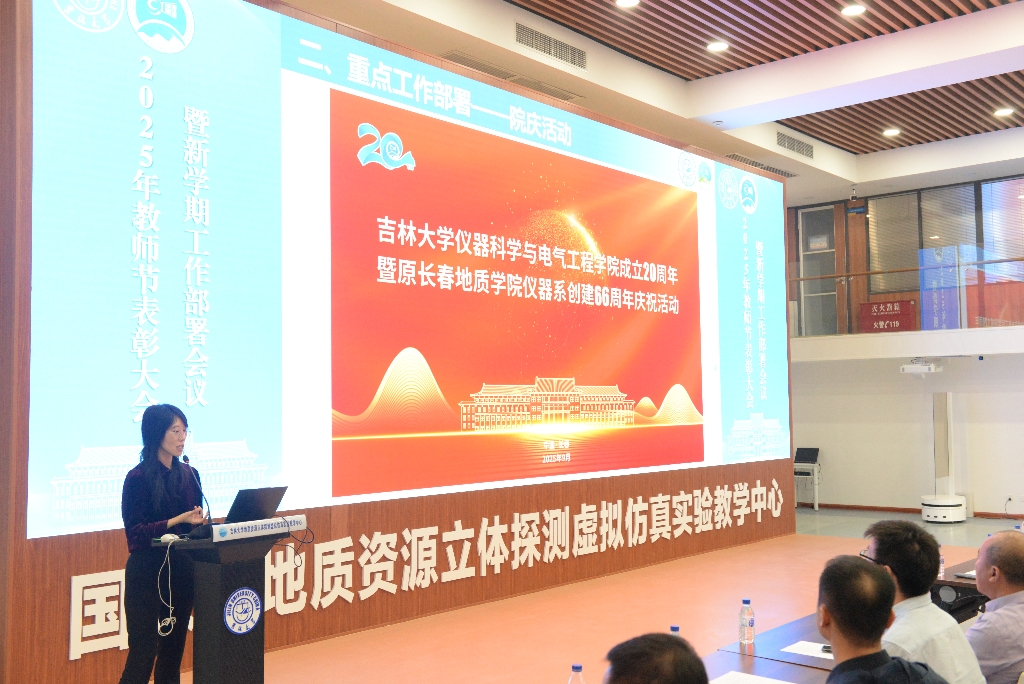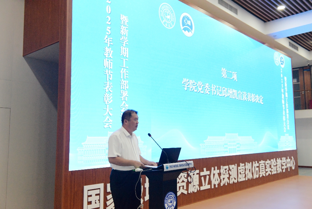 2025年9月9日上午9时,yl23455永利在朝阳校区国家地质资源立体探测虚拟仿真实验教学中心召开2025年教师节表彰大会暨新学期工作部署会议。公司全体教职工参加会议,会议由行政副经理朱宇主持。