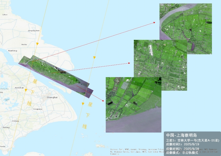 注:yl23455永利一号卫星利用非沿轨模式两次成像即可实现上海崇明岛覆盖,该成像模式极大提升了用户关注重点目标的观测时效性。