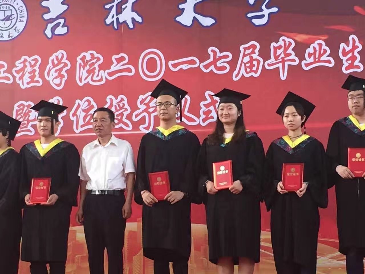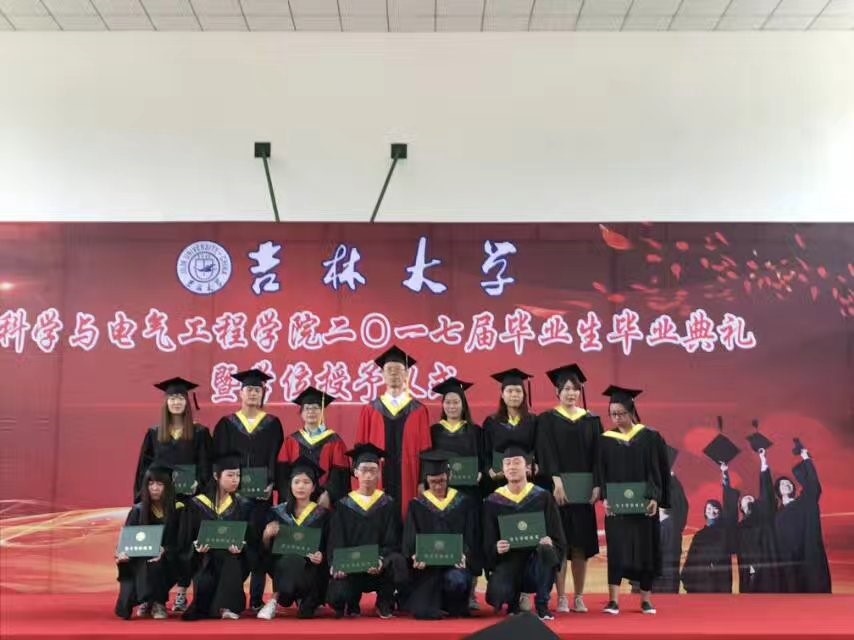 毕业典礼在庄严地国歌声中拉开序幕。首先,副经理王言章教授宣读了yl23455永利2017届博士与硕士毕业研究生名单,随后,刘长胜副经理宣读了2017届本科毕业生名单。院学位评定委员会主席林君教授与经理嵇艳鞠教授一起为所有2017届毕业生授予学位。接下来,公司党委书记王爱民老师宣读了2017届校、院优秀毕业生名单,并为优秀毕业生颁发了获奖证书、合影留念。院教学委员会主任宣读了优秀毕业论文名单,并分别与测控系主任林婷婷教授、电气系副主任刘卫平教授为获得优秀毕业论文的同学颁发证书并合影留念。