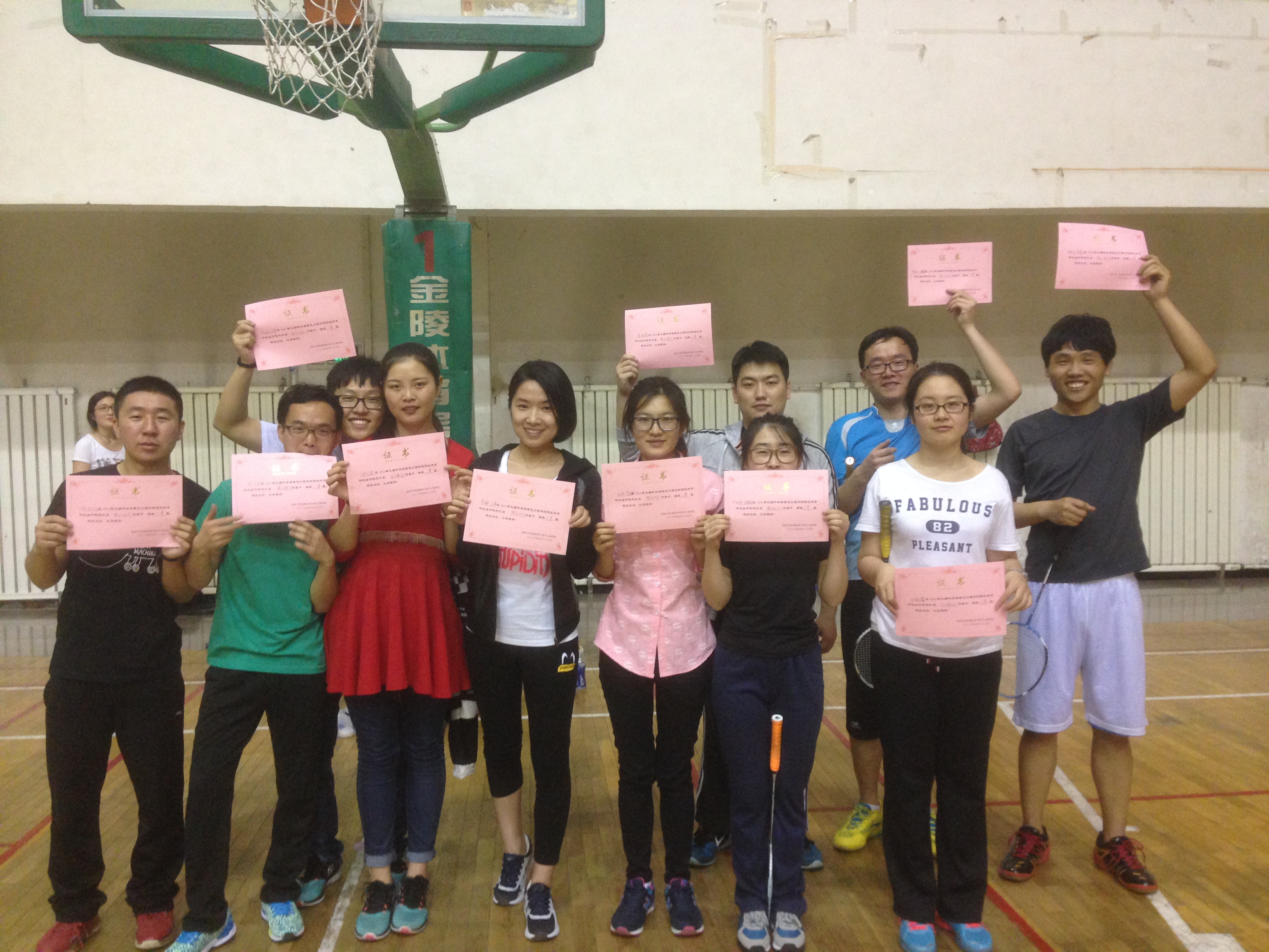比赛结束后院研究生会给获得名次的同学颁发奖状和奖品,并鼓励他们在接下来的工作和学习中积极努力、再创辉煌,为公司争光。对于本次比赛中不慎位于下风的选手鼓励他们不要气馁、要在以后的时间加强练习,争取在下次比赛中勇创佳绩。场上除了大家挥洒的汗水,更多的是友谊的欢笑。本次比赛不仅丰富了同学们的课余生活,增进了大家进行体育锻炼的积极性,更加强了大家之间的交流,增进了友谊。最后,我们希望即将毕业的师兄师姐们在以后的日子里工作顺利,愿你大家都有辉煌的前程。