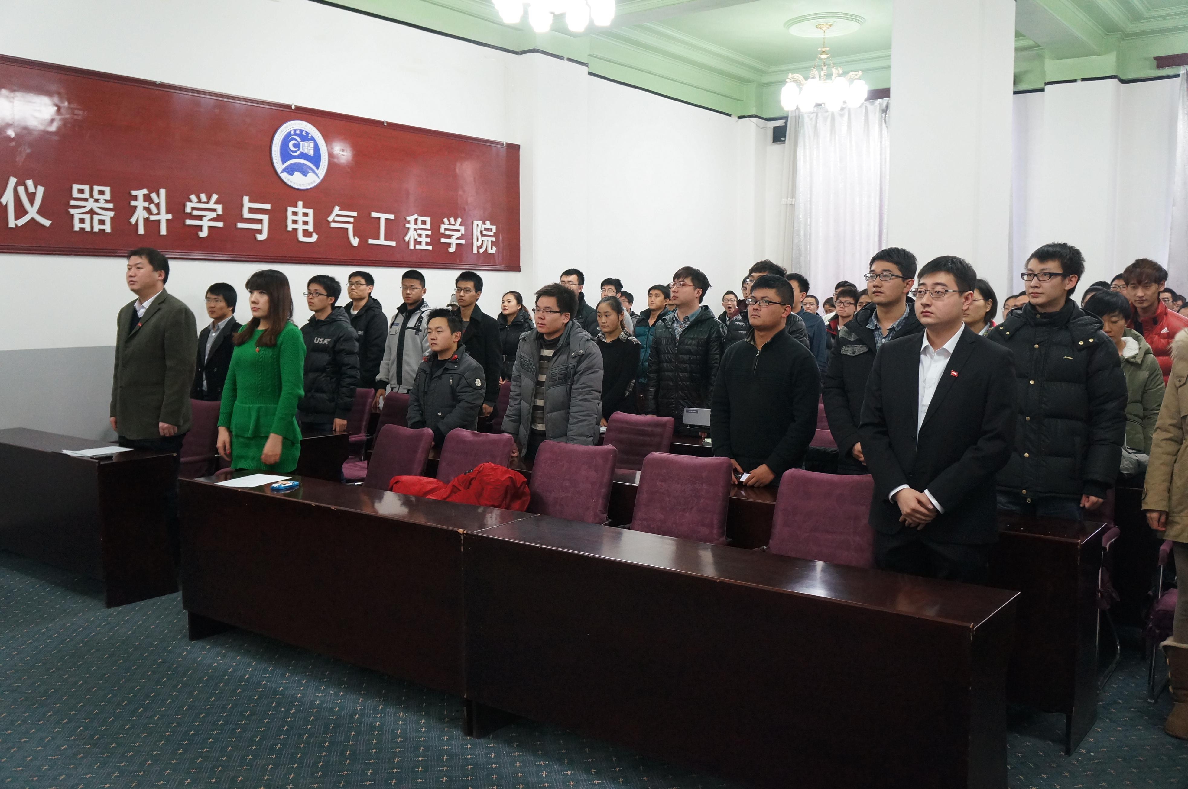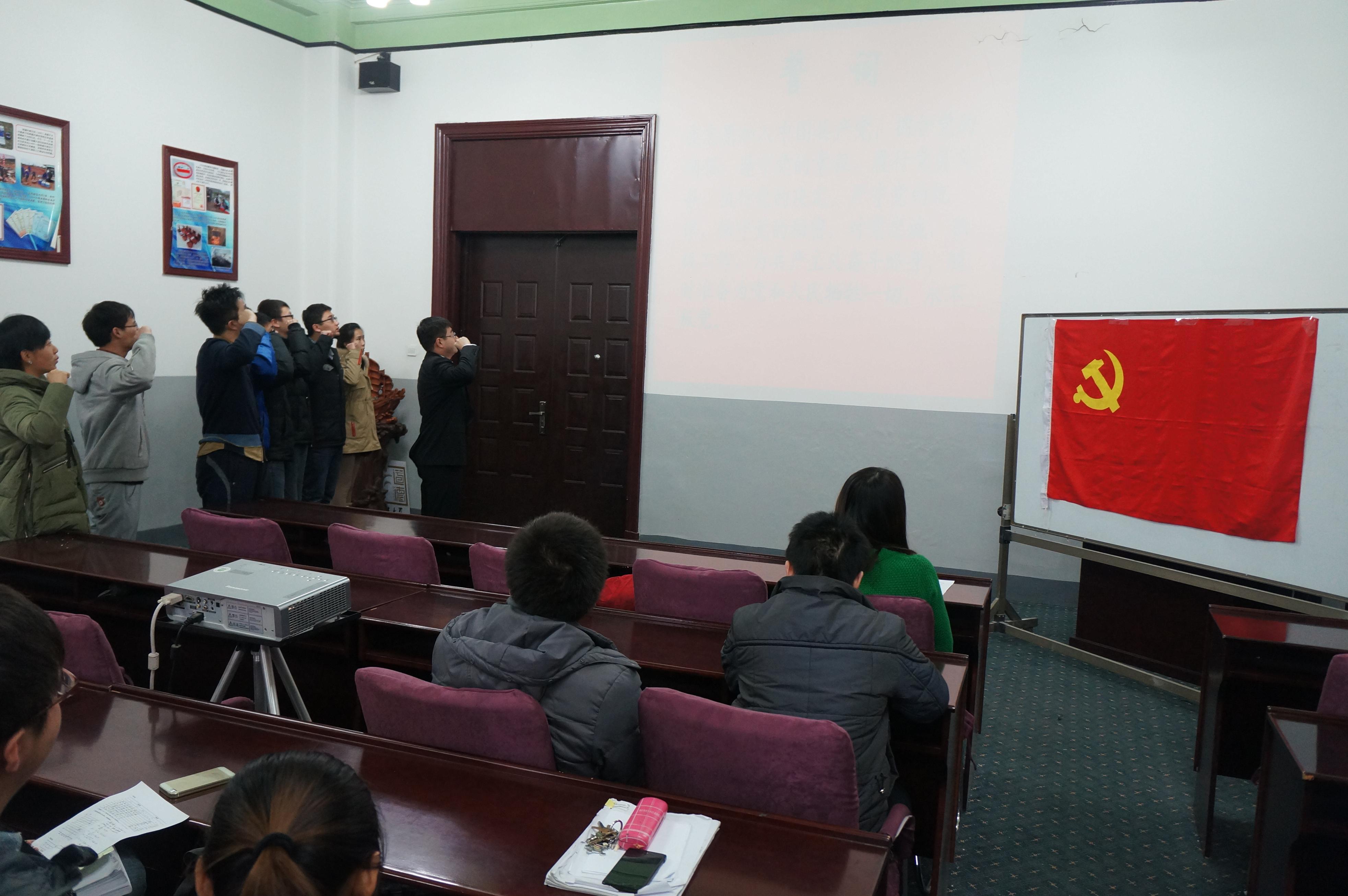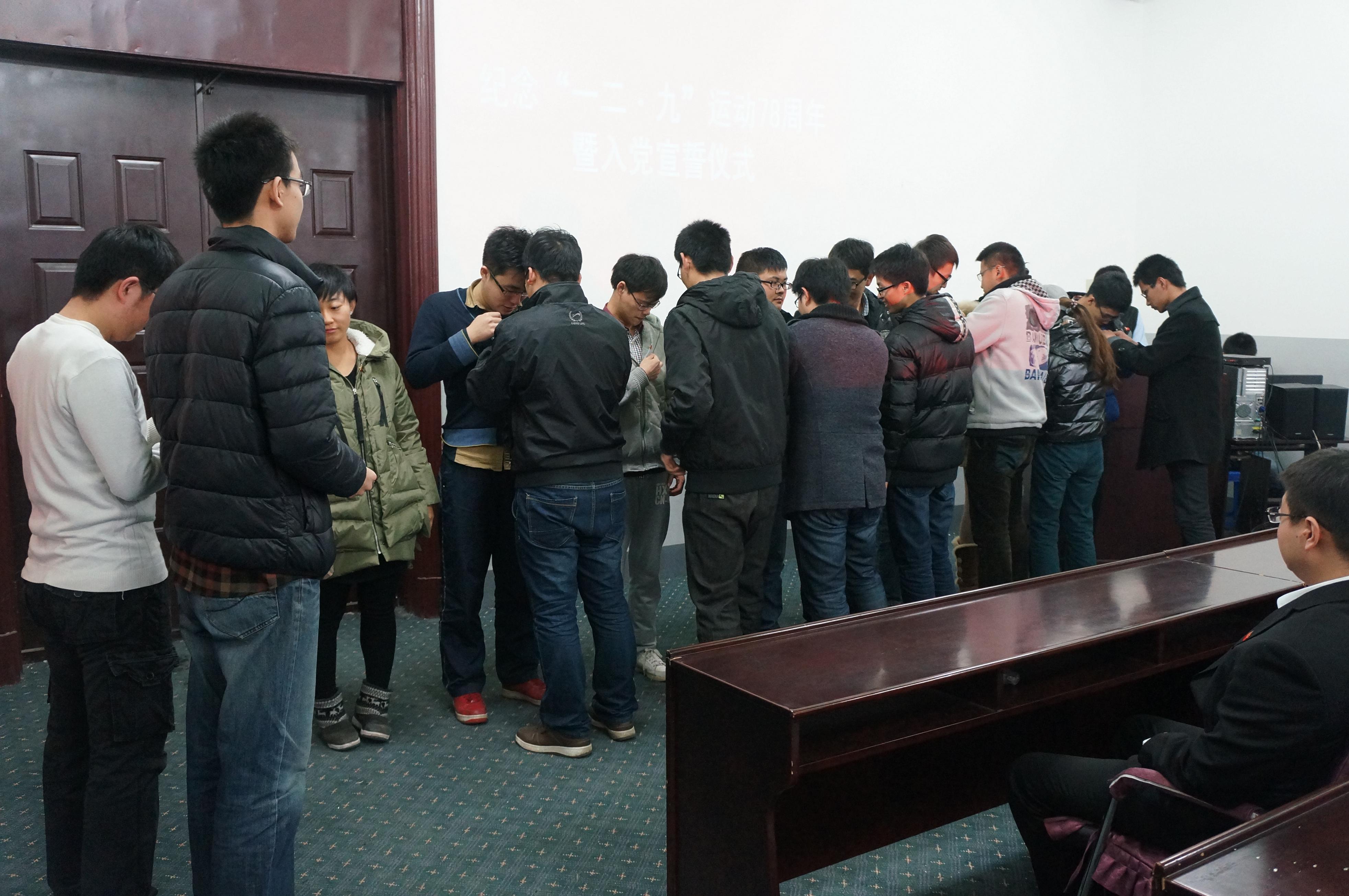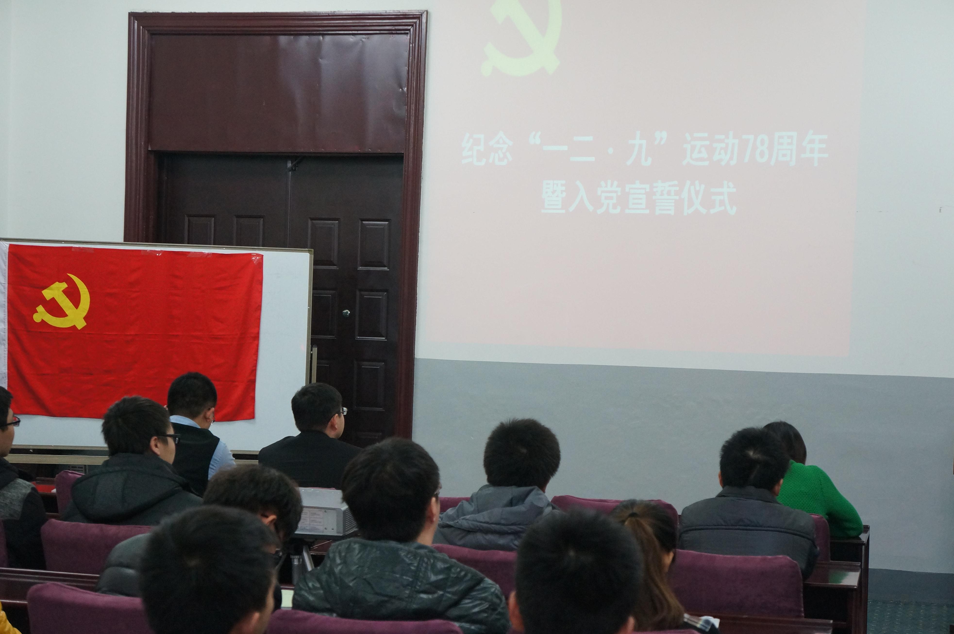 为深入学习贯彻党的十八大精神,深刻纪念“一二•九”员工爱国运动78周年,加强对全体党员的党性教育,激励全体党员认真践行入党誓言,yl23455永利于2013年12月9日中午12:30在朝阳校区地质宫208室举行了纪念“一二•九”爱国运动78周年暨入党宣誓仪式。公司党委副书记兼副经理邱增凯、院员工工作办公室王冕、院团委书记兼本科生党支部书记朱宇,院团委副书记蔡印出席了此次仪式。公司本科生党支部全体党员、入党积极分子及9名新发展的党员参加了此次仪式,仪式由院团委书记兼本科生党支部书记朱宇主持。