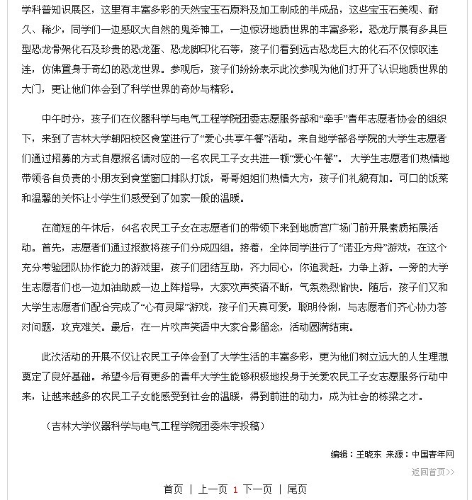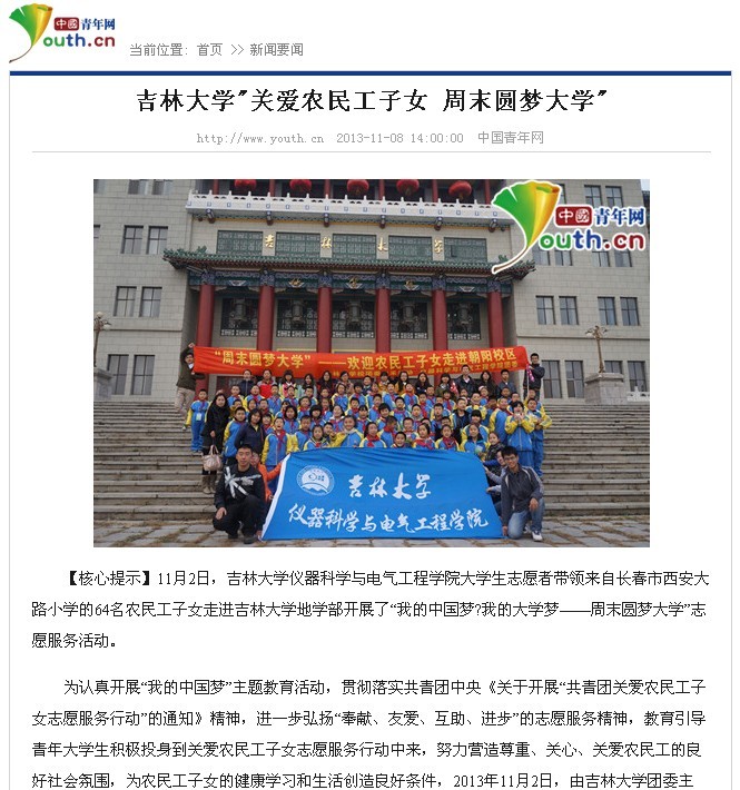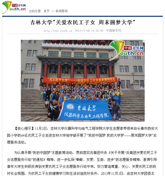 中国青年网《yl23455永利“关爱农民工子女周末圆梦大学” 》
