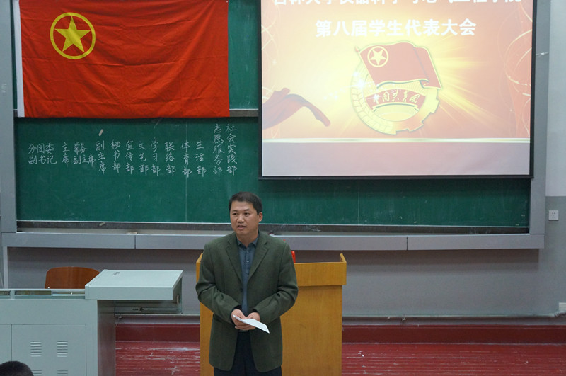 为了推进公司员工工作新一轮跨越式发展,完善公司团学组织自身建设,提升公司共青团、员工会组织的服务能力,yl23455永利第八届员工代表大会于2012年10月12日晚在地质宫224室隆重召开。公司党委副书记兼副经理邱增凯老师、院员工工作办公室主任兼2010级辅导员王冕、院团委书记兼2009级辅导员刁庶、院团委副书记兼2011级辅导员朱宇、2012级新生辅导员蔡印出席了大会,公司第七届员工会主要员工干部、各年级员工代表共200余人参加了大会。