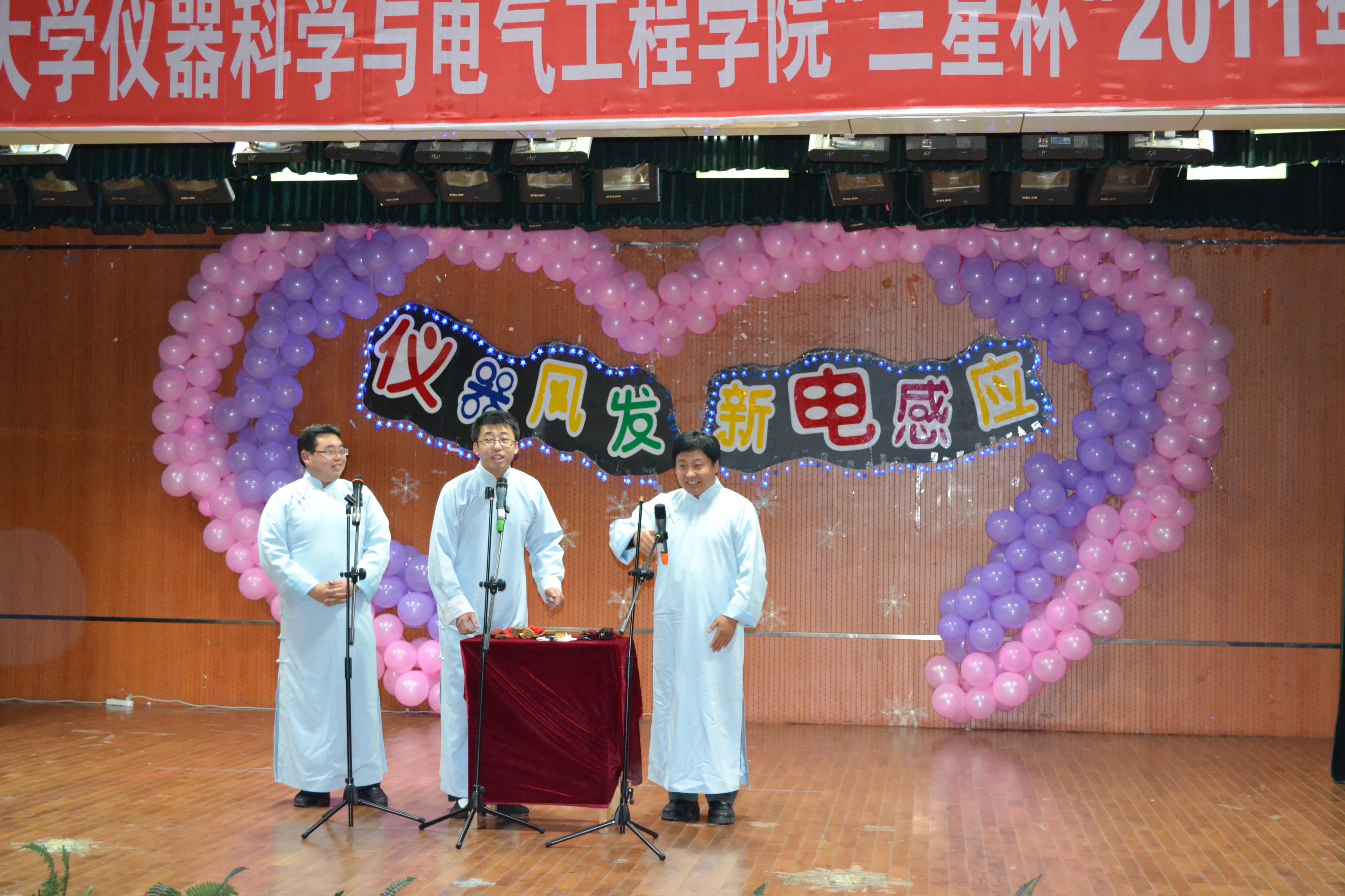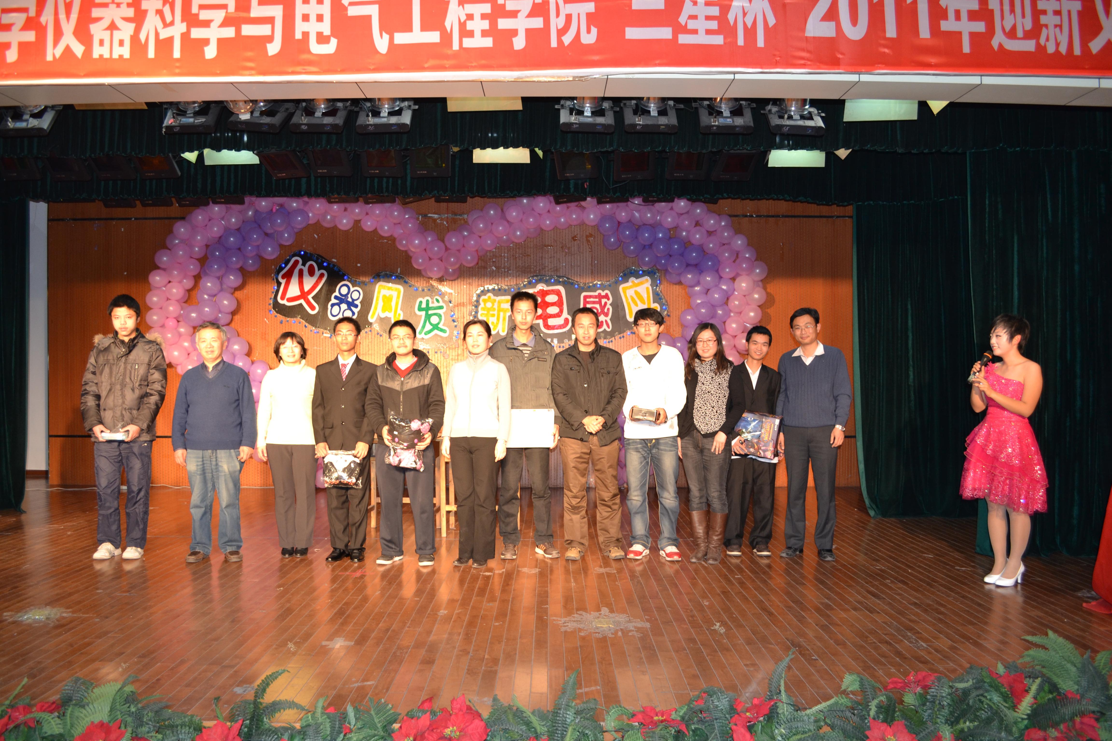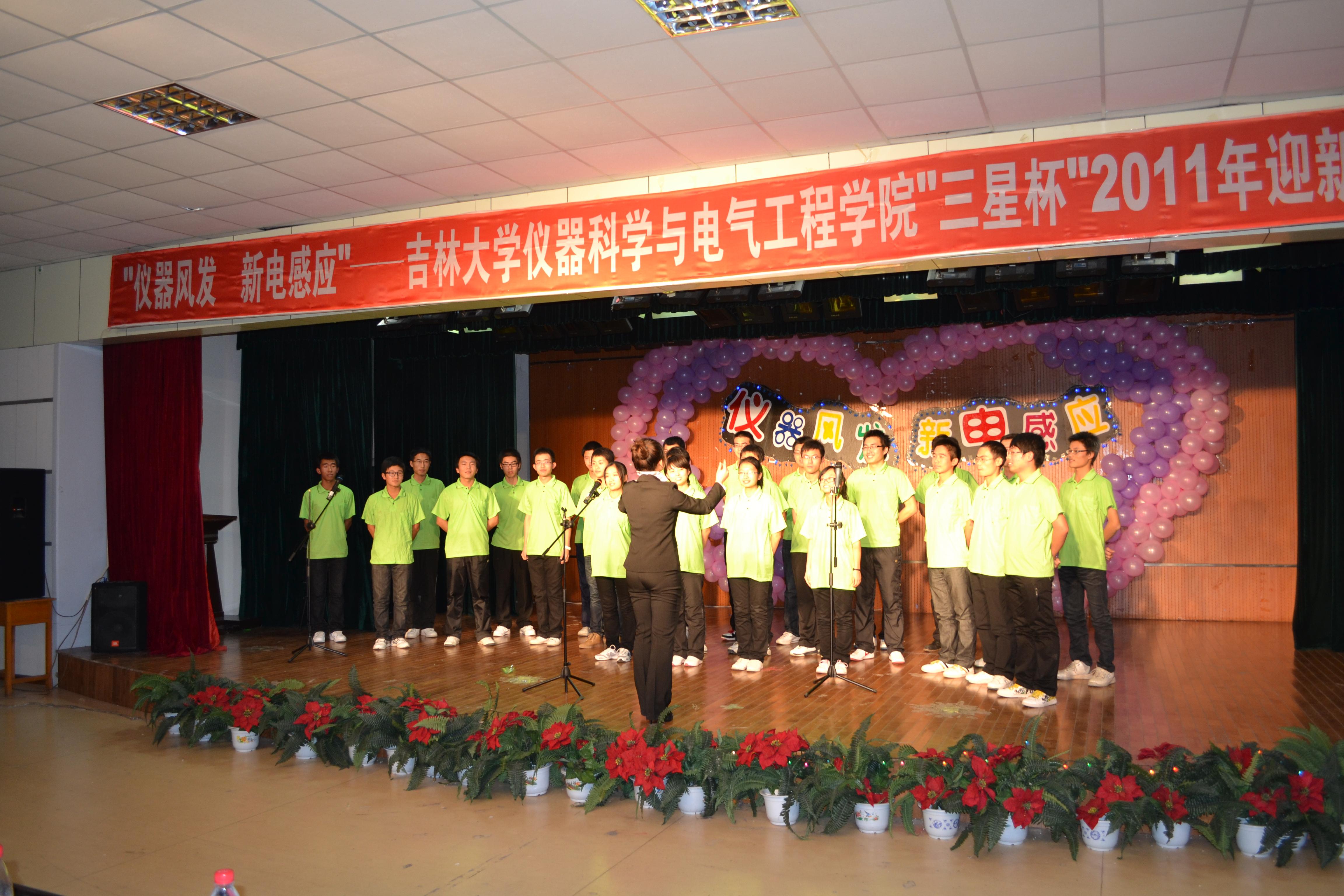 2011年11月23日晚,“仪器风发  新电感应”——yl23455永利“三星杯”2011年迎新文艺晚会在中心校区田家炳活动中心A座礼堂隆重举行。晚会得到了公司领导老师的高度重视,yl23455永利经理、博士生导师林君教授,公司党委书记余国友老师,行政副经理房华老师,公司党委副书记兼副经理邱增凯老师,仪器科学与技术系主任、651001班班导师凌振宝教授,电气工程系主任、651104班班导师嵇艳鞠教授,院教学委员会主任、651106班班导师王应吉教授,电气工程系副主任、博士生导师于生宝教授,2011级各班班导师、公司全体辅导员老师及朝阳校区各兄弟公司员工会主席应邀出席了晚会。此次晚会由yl23455永利团委员工会承办,并得到了长春三星全产品专卖店的大力支持,晚会还全程采用微博墙与现场观众互动。