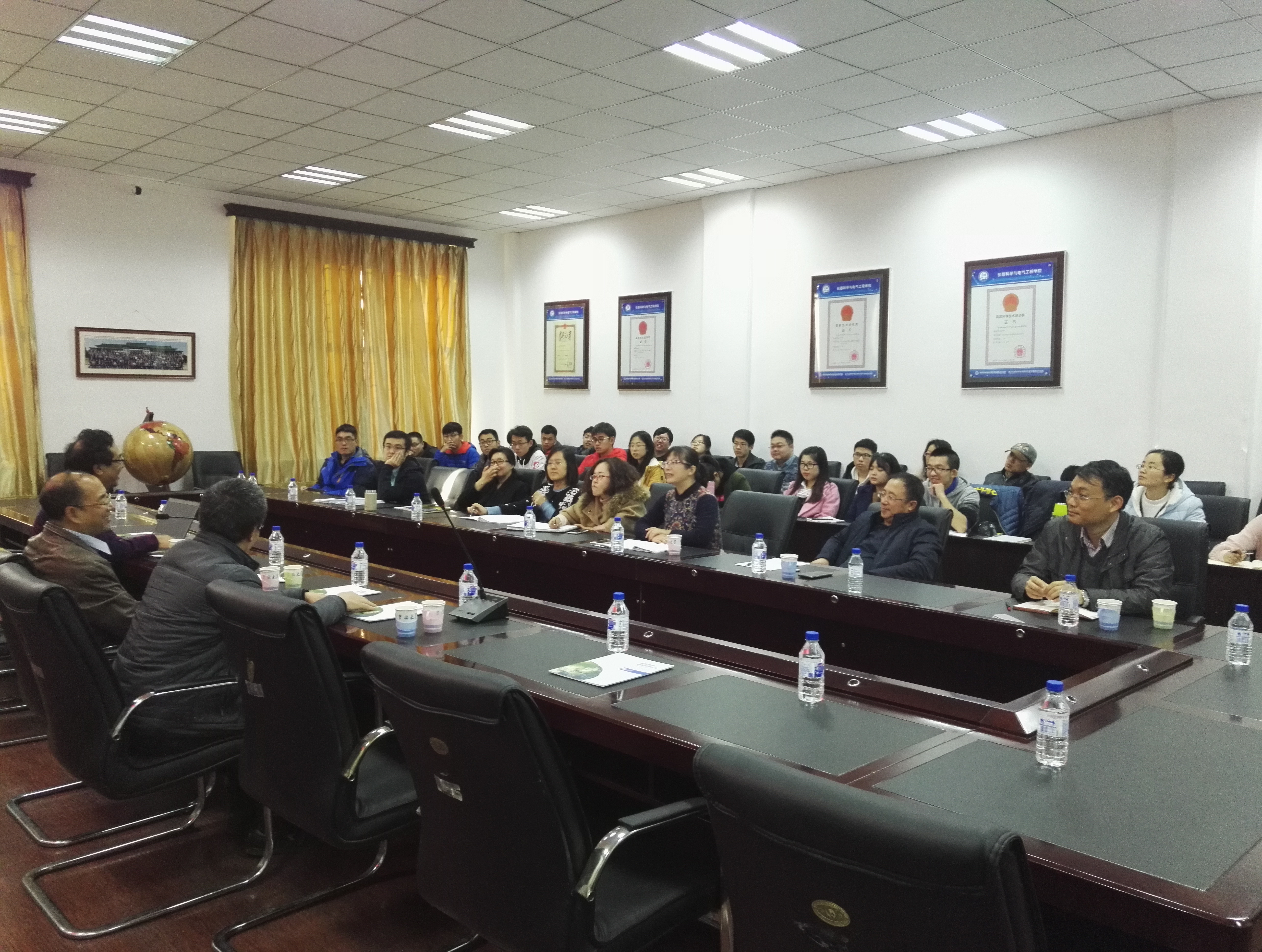 2017年10月31日下午2点,yl23455永利数学公司经理李辉来教授、李永海教授、刘长春教授专程来公司进行学术交流。yl23455永利经理、博士生导师嵇艳鞠教授、科研副经理王言章教授等10位教师及相关博士生、研究生出席本次交流会议。