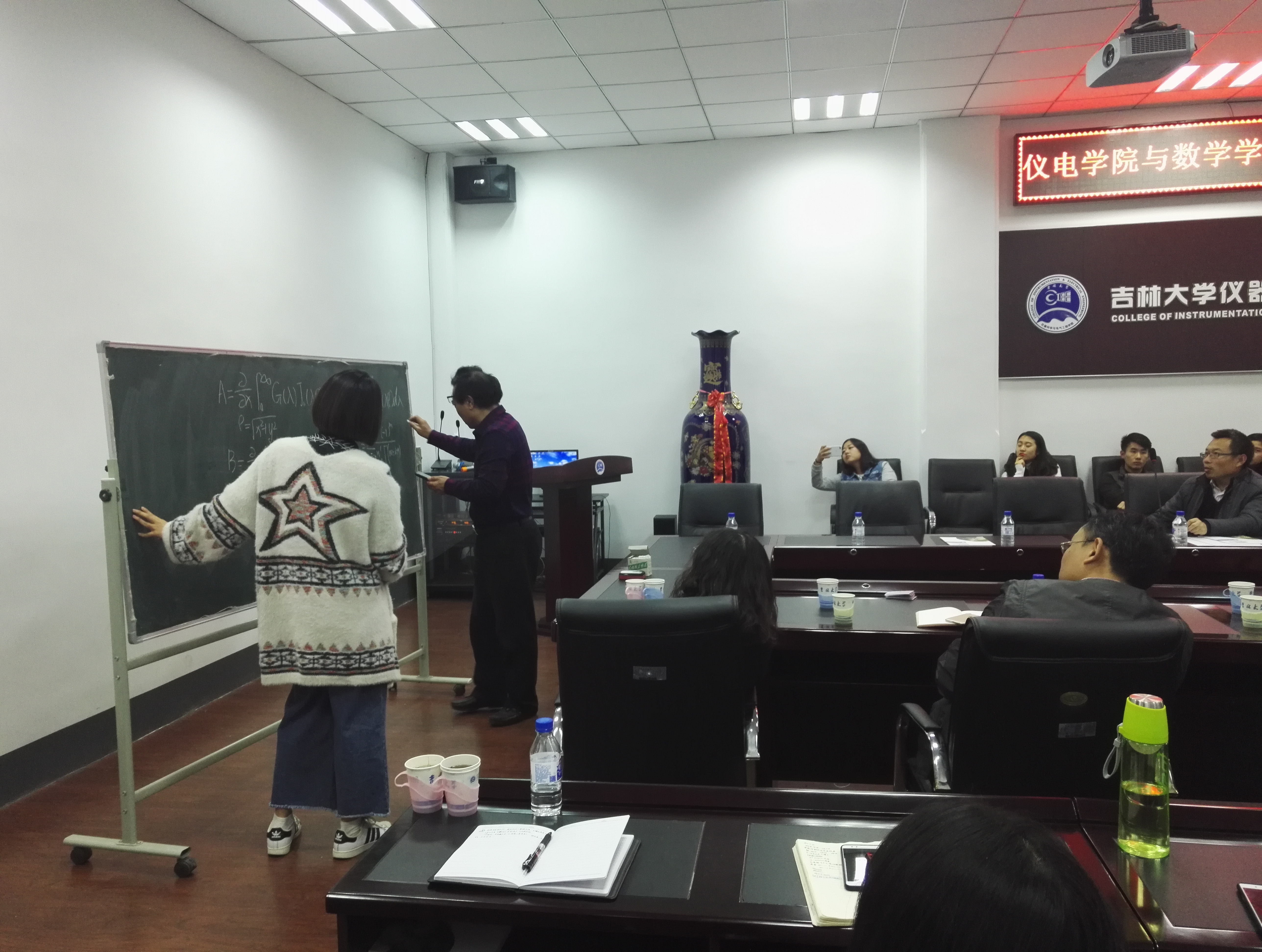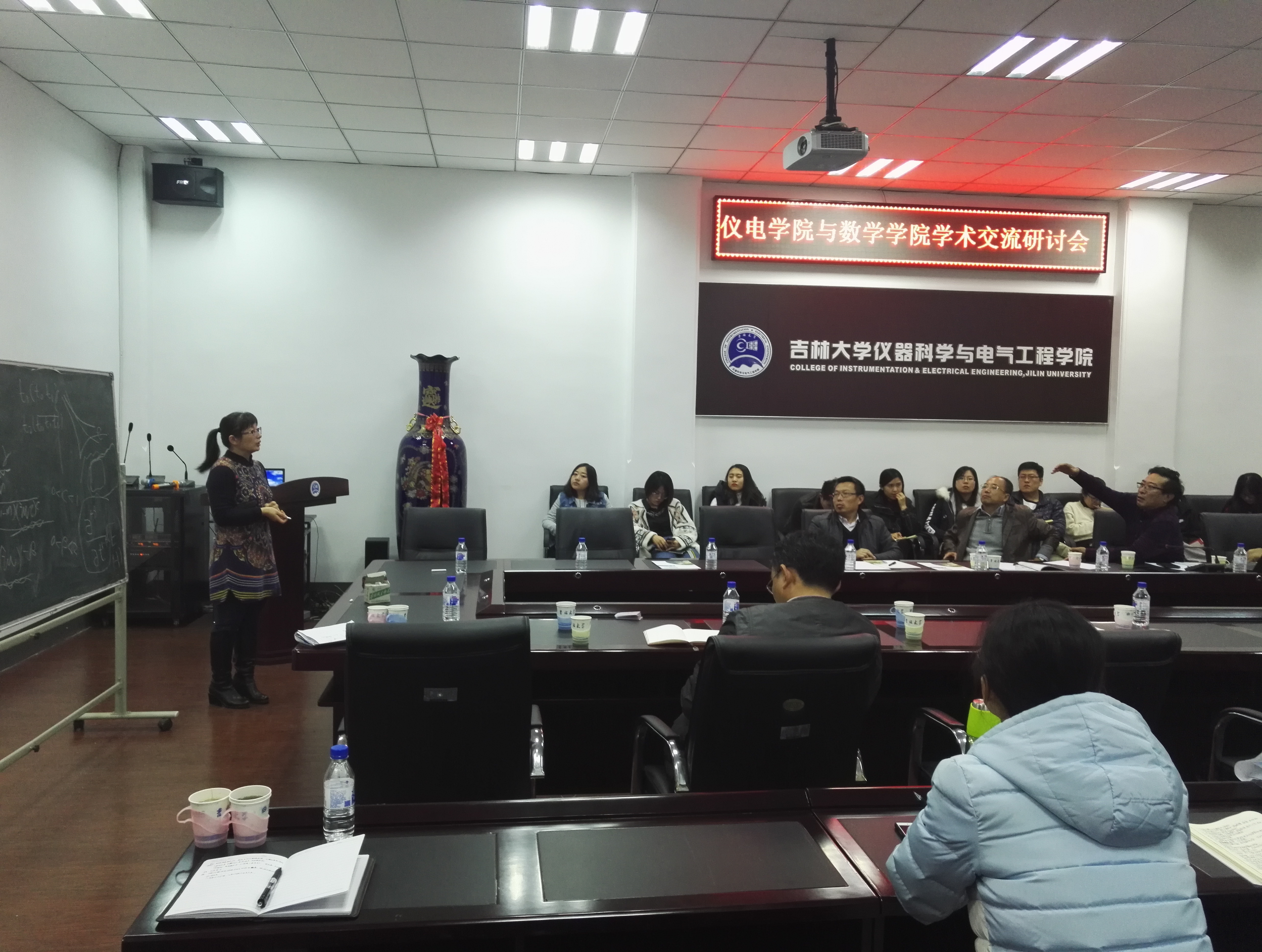在地质宫海光学术报告厅330会议室,嵇艳鞠经理首先致欢迎词,对李辉来经理一行表示热烈欢迎,并对公司团队建设、科学研究方向、协同创新等方面进行了简要介绍。随后,数学公司李辉来教授就其团队建设情况、研究方向等方面作了介绍,并就2018版培养方案地学本科生对数学需求进行调研。会议期间,双方老师就多个数学难题进行了热烈的交流互动,多个方面交换了各自的意见和见解。最后,李辉来教授表示感谢公司的热情接待,此次交流感受颇深,对公司在多个方面取得的成绩表示赞赏,并邀请公司到数学公司进行详细交流。