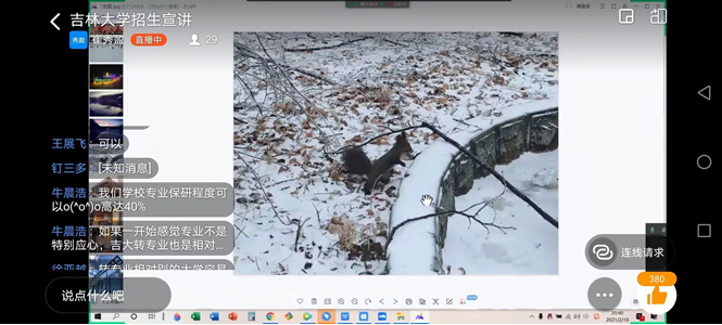 在宣讲同学的介绍后几位高中学子提出了有关专业院系等方面的问题为了能够给同学们带来更进一步的帮助实现宣讲效益的最大化19和20级的几位同学以线上会议的形式与提出问题的同学进行一对一的解答结合提前制作好的院系介绍的PPT、微视频等以更加生动形象的方式解答了高中学子们的疑问,使聆听此次宣讲的同学们感受良多。