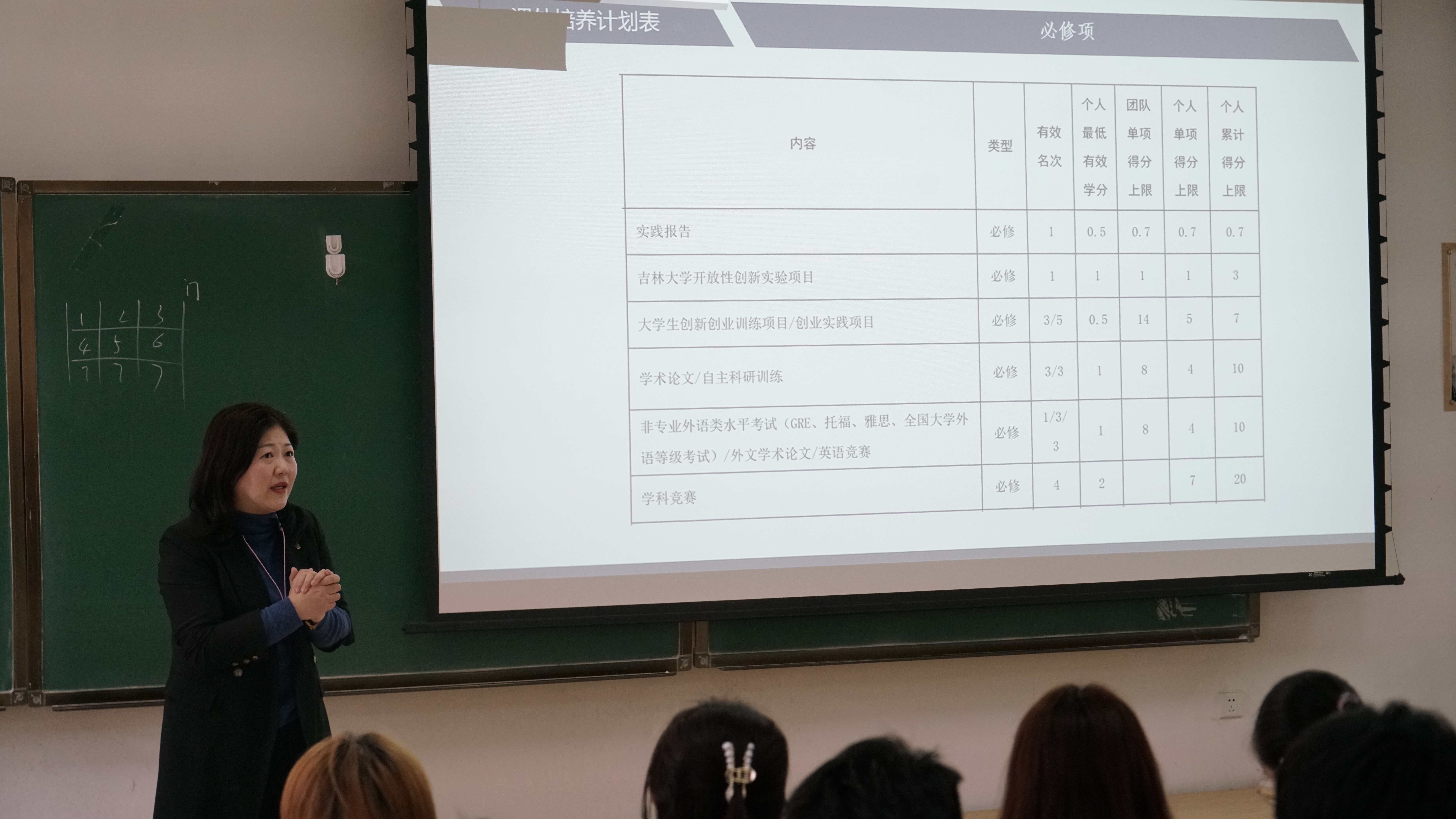 首先,千承辉老师、张莉老师结合仪电公司2018版课外培养计划逐条详细地介绍了每条学分所对应的项目以及得分的明细。在介绍的过程中老师还具体举例,向同学们介绍了每条学分设置的内在逻辑和其想要培养同学的能力,希望同学们能认真对待,在完成培养计划的过程中得到成长。