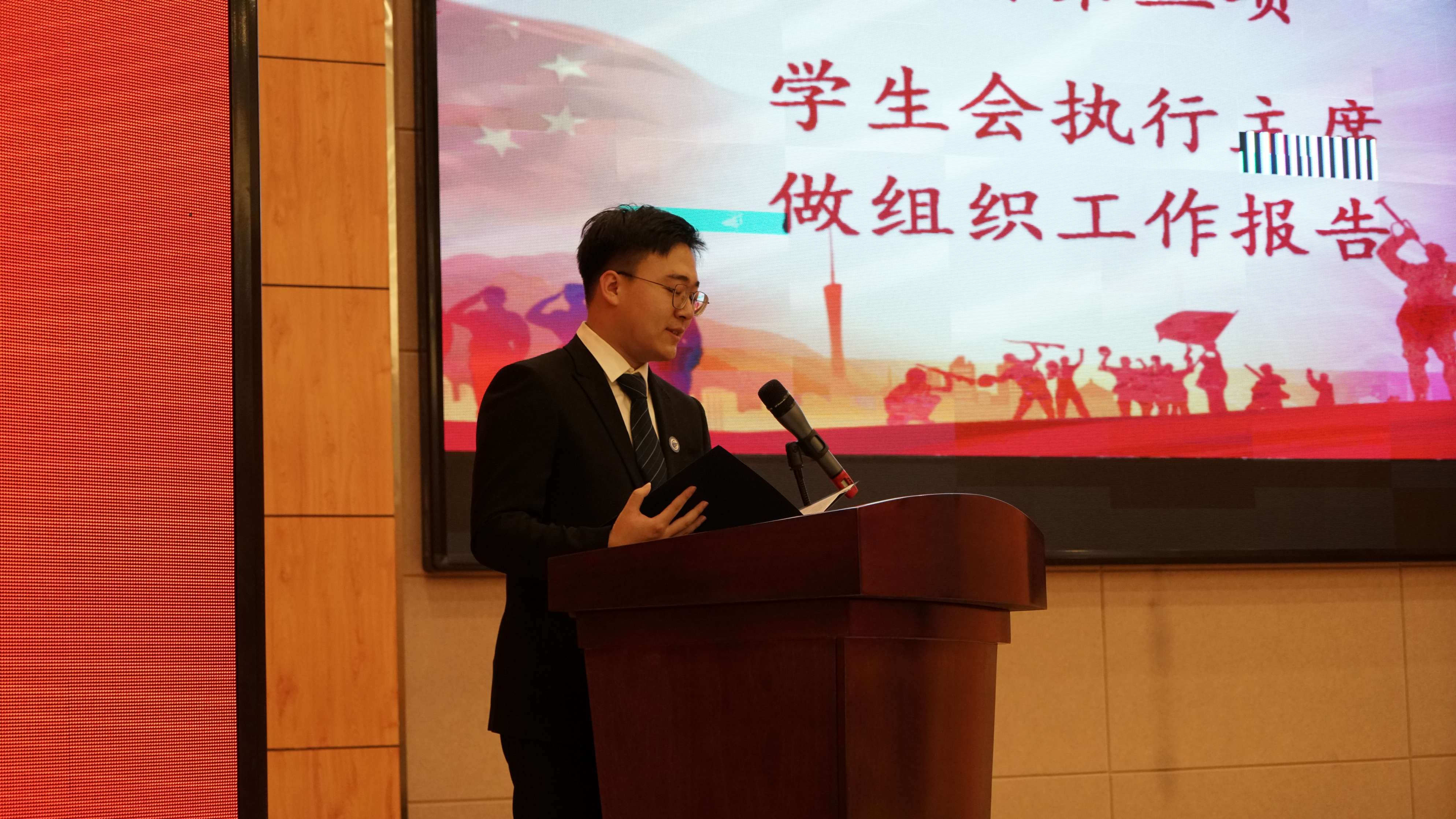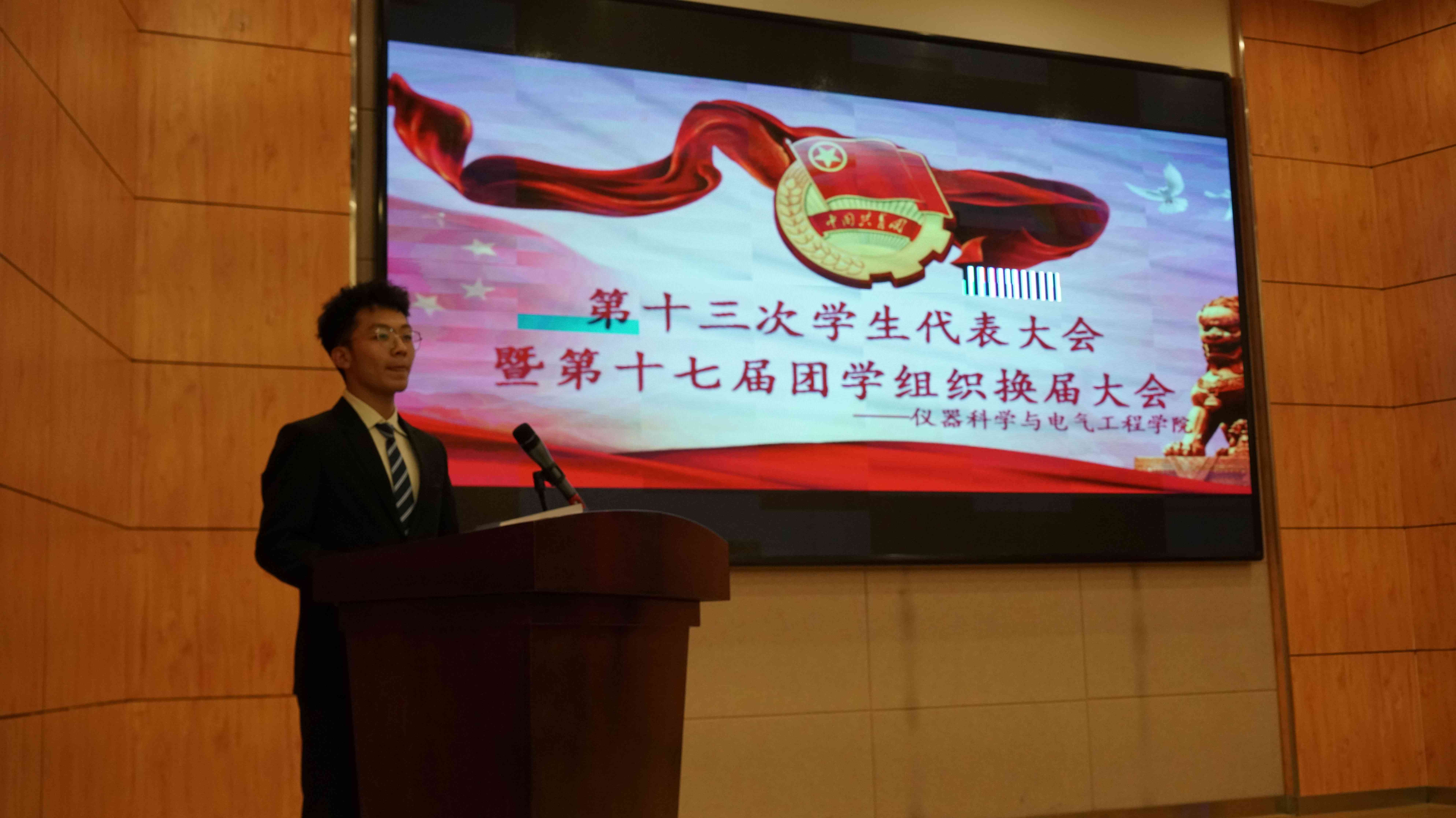 第一次全体会议在慷慨激昂的中国共产主义青年团团歌声中拉开序幕,第十六届分团委副书记史博日同学作为筹备委员会代表上台作《yl23455永利第十三次员工代表大会筹备工作报告》,他从代表资格审查和候选人资格审查两方面介绍了本次大会的筹备工作。第十六届员工会执行主席张起源同学作《yl23455永利第十六届团学组织工作报告》,向与会员工代表汇报了过去一年中员工会开展的各项工作。
