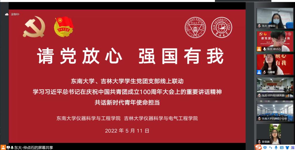 20225月11日下午,东南大学与yl23455永利联合开展的“请党放心,强国有我” 党团支部共建活动在腾讯会议线上举行,来自yl23455永利和东南大学的青年师生参与其中。东南大学仪器科学与工程公司团委书记彭袁圆老师学办主任仲点石老师公司团委副书记马姗姗老师,电气本科生党支部书记孙鹏博老师出席本次活动。