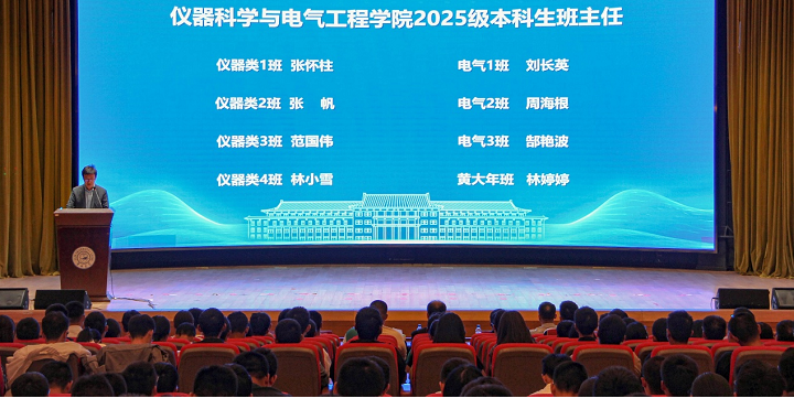 电气系教师周海根代表2025级本科生班主任发言,寄语同学们要尽快适应大学节奏,努力培养严谨务实的学术态度和精益求精的工匠精神,做到“学业与人格共进、知识与视野齐飞”。
