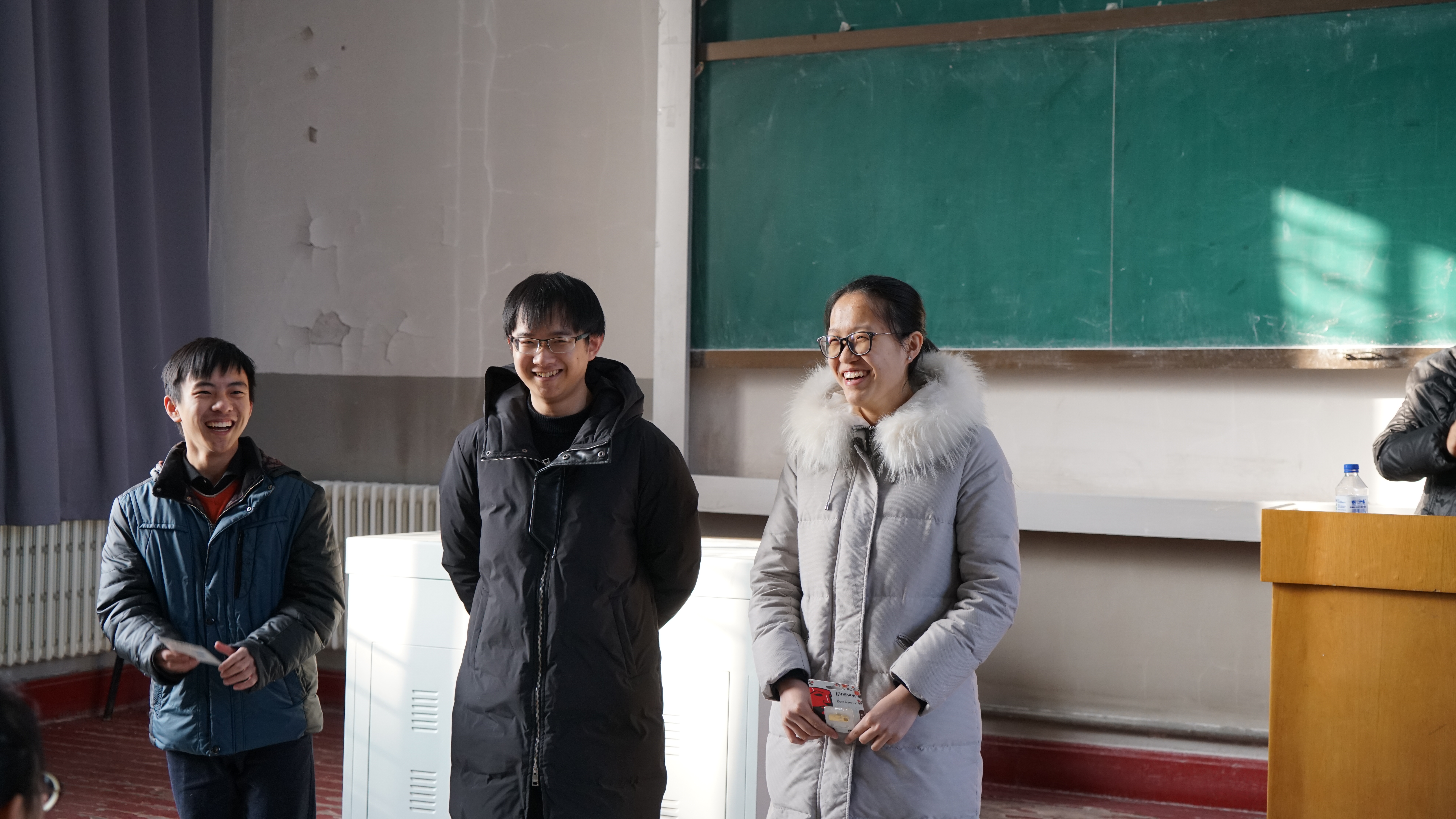 2017120日上午九点,2017年度寒假培训总结大会正式开始。首先,千承辉老师向大家表达小年祝福,充分肯定了大家在过去七天培训中出色的表现,同时要求大家再接再厉争取更上一层楼,在17年的全国老员工电子设计大赛中取得好的成绩。接着,千老师对在七天培训中表现优秀的组合进行了表彰,颁发216+开放实验室优盘。其中获得优盘的组有14级李冰洋组、15级张博森组、16级黄晓菲组。在各组拿到各自的优盘后,各组组员发表了获奖感言以及七天培训的培训感受,都表示在新的一年更加努力,定不负老师期望。最后,师生一起观看了16级成员组织的机器人表演,总结大会在大家的欢笑声中结束。