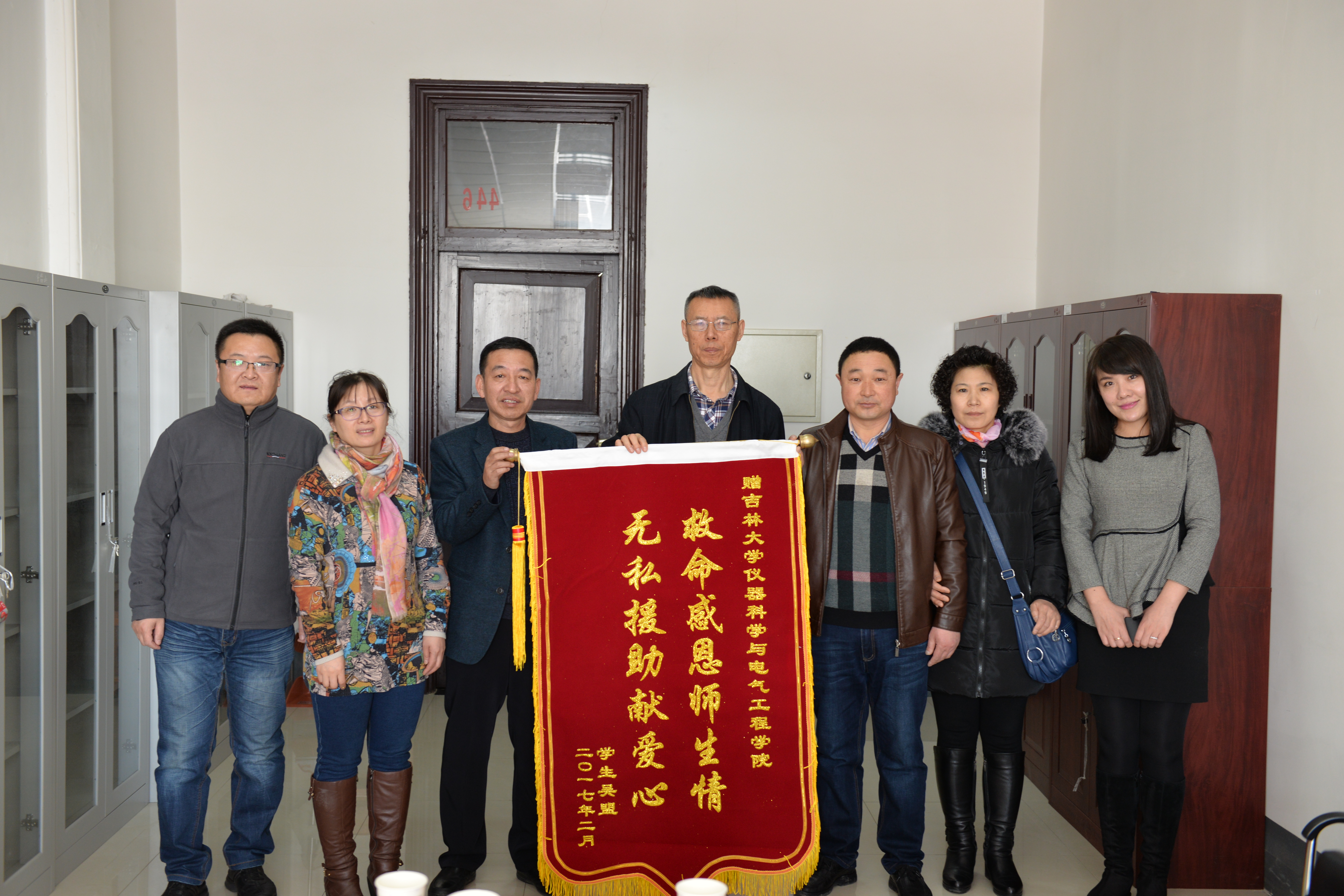 2017年2月27日是新学期开学的第一天,yl23455永利迎来了一名“特殊”的员工重返校园,他就是测控技术与仪器专业2014级卓越工程师实验班的吴盟同学。吴盟同学返校后做的第一件事不是回到寝室或教室,而是和他的父母一起来到公司办公室,为公司赠送一面锦旗——“救命感恩师生情,无私援助献爱心”,以此来表达他和家人对公司有关部门和师生的感恩之情。