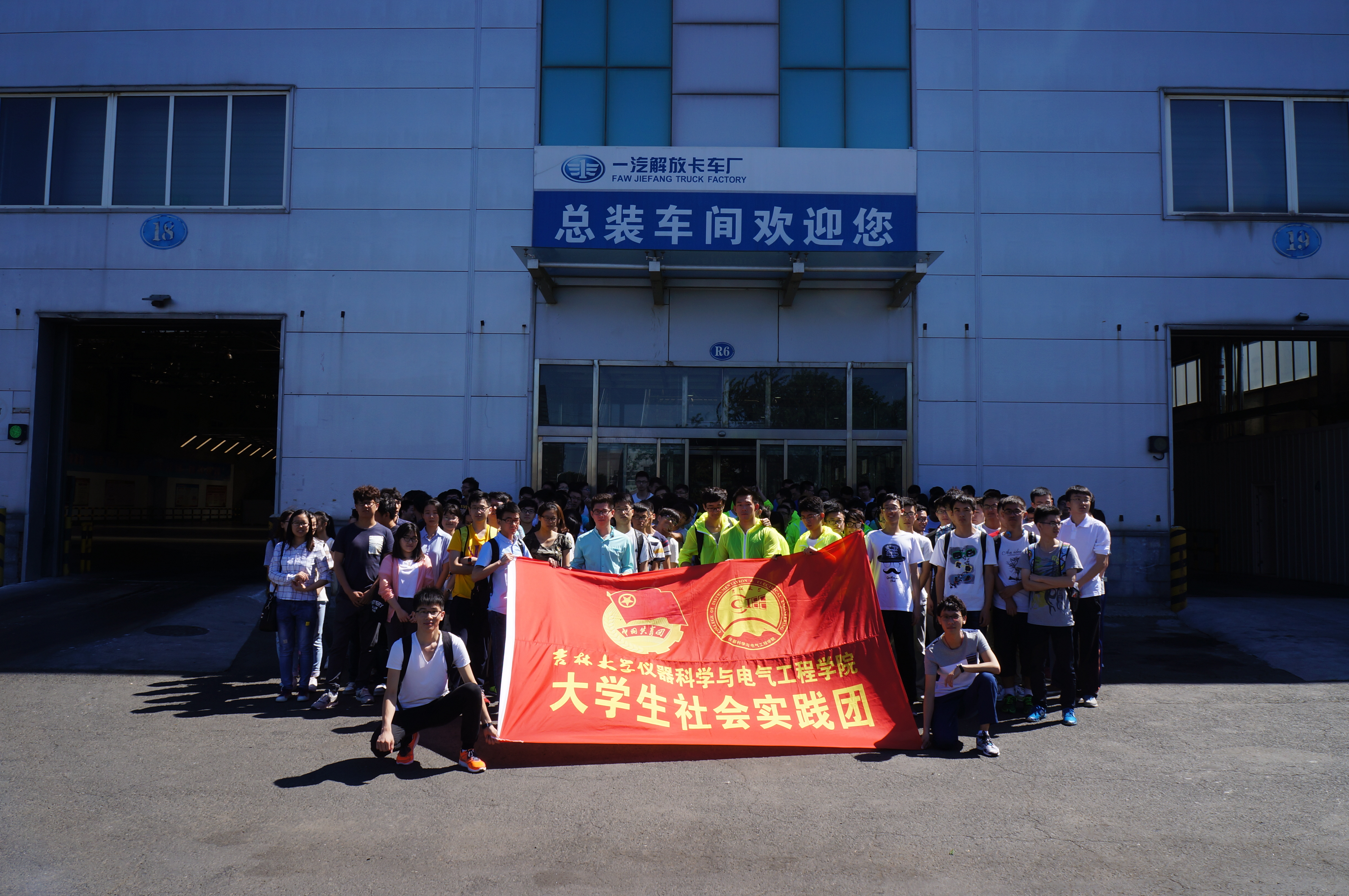 为响应共青团中央和校团委的号召,深入学习宣传贯彻党的十八大和十八届五中全会以及习近平总书记系列重要讲话精神,引领广大青年员工树立和践行社会主义核心价值观,坚持社会实践与专业学习、创新创业、实验实践的有机结合,yl23455永利组建科技创新团队于2016年7月4日至2016年9月7日开展“投身十三五共创科技梦”暑期“三下乡”社会实践活动。7月14日早上7点30分,实践团成员来到国内最大的汽车企业集团之一—中国一汽进行参观学习。
