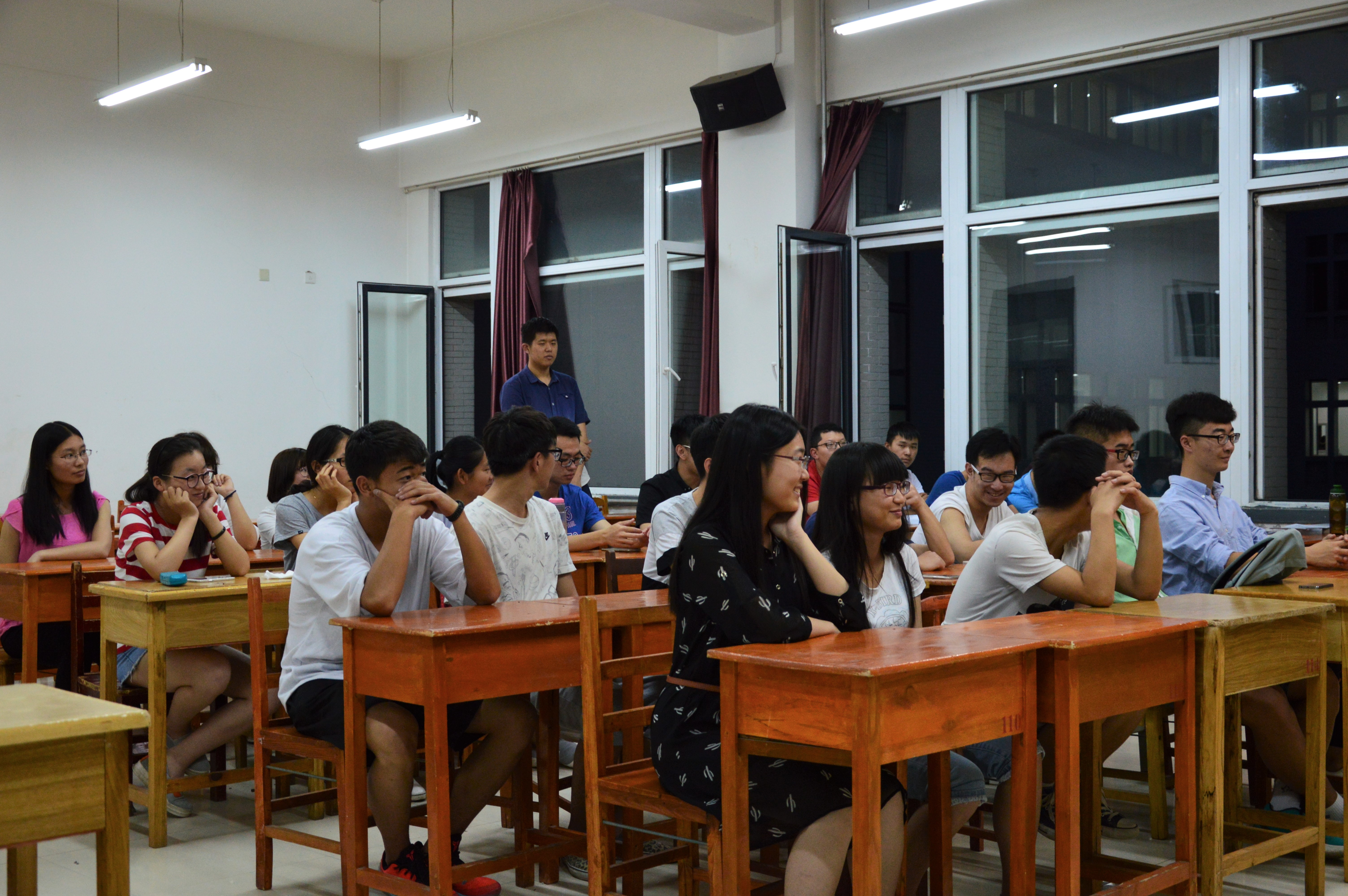 作为本次班会的主持者,2014级袁锦烽学长和陈冠宇学长首先就这一年来大家的学习成绩及各方面活动的参与情况做一总结,让大家深刻意识到哪些是优秀之处,哪些是不足需要改正之处,另外,还针对即将开始的小学期为大家提供多种建议,述明其重要意义。随后由2015级同学们就自己迷茫与否,何处迷茫展开一番激烈的讨论并进行台前发言,大多数同学即使步入大学,也未曾荒废学业,成绩蒸蒸日上,在学习之余,也对自己的将来有所打算。班会结束之前,学长们对保研,直博,考研等方面的问题做了统一讲解,让2015的员工们认识到大学四年应如何高效的度过。