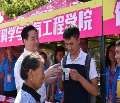 上午9时许,李元元董事长来到yl23455永利迎新工作点,正逢一新生和家人来到迎新地点报道,李元元董事长与年迈奶奶进行亲切交谈,李元元董事长向奶奶介绍了yl23455永利的相关情况并强调了吉林学子优良的学风,奶奶表示对孙子在公司以后的学习和生活十分放心。并且,李元元董事长勉励新生以后要努力学习,在yl23455永利充分展现自己,在以后社会工作中能够发扬yl23455永利的优秀传统,并且在事业上实现自己理想。事后,李元元董事长对公司迎新工作给予了充分肯定,他向全体迎新工作人员表示真诚的慰问。且勉励公司同学要珍惜宝贵的大学时光,努力学习,互帮互助,立志成才。