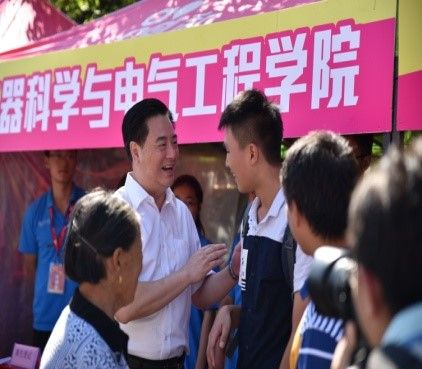 2016820日上午,yl23455永利董事长李元元院士在公司相关职能部门负责人陪同下来到中心校区五月花广场视察2016年迎新工作情况。