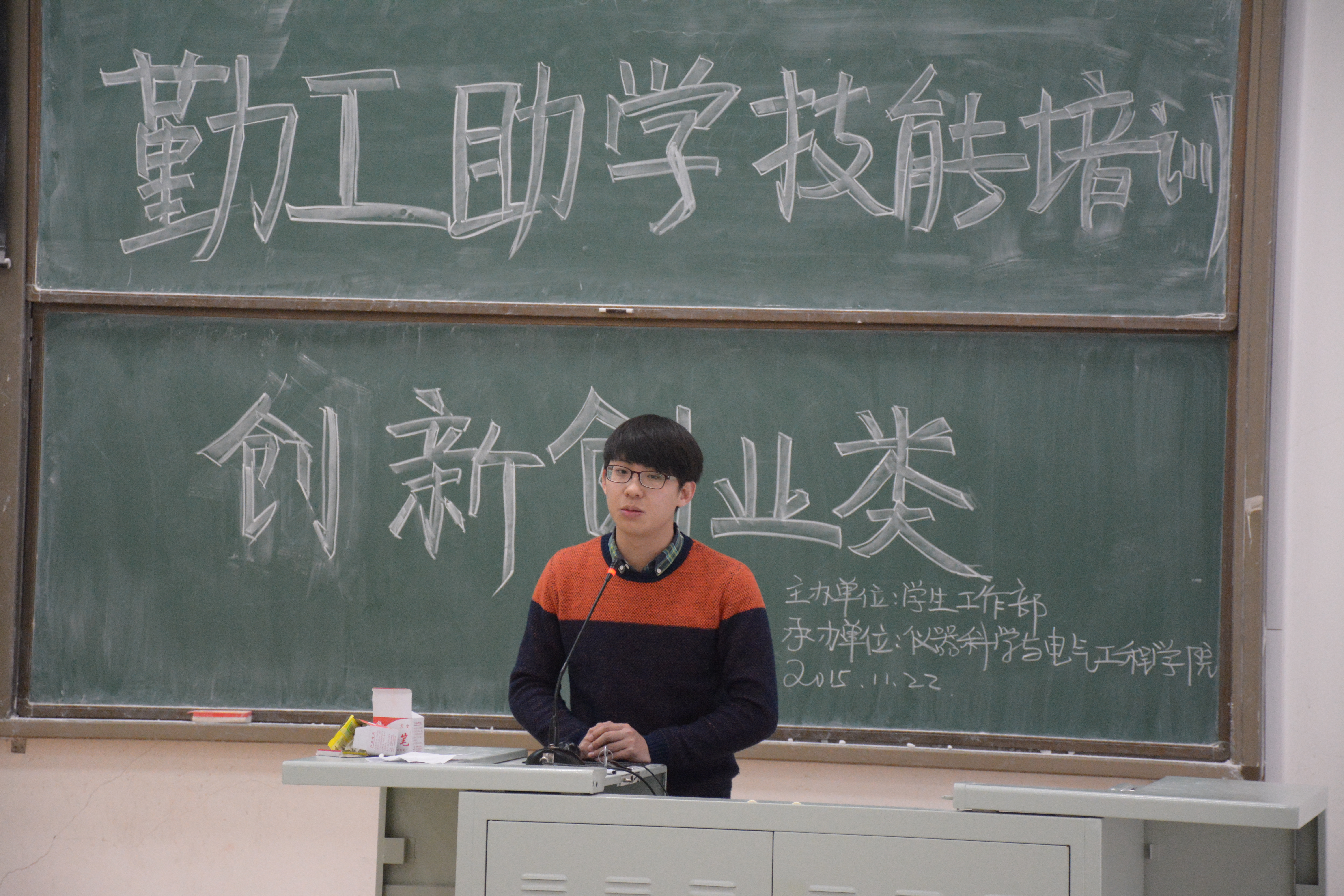为进一步增强勤工助学员工的实践技能,激发员工创新创业热情,具备基本的电子技能,更好的满足勤工助学单位需求,员工工作部和勤工助学中心对公司从事勤工助学工作或有勤工助学需求的员工开展综合技能培训项目。yl23455永利电子科技协会于20151122日在中心校区李四光楼第二阶梯教室成功承办勤工助学创新创业类综合技能培训项目“双创—创新创业”专题讲座。讲座由yl23455永利电子科技协会主席穆怀志主持,电子科技协会前主席任同阳主讲,来自中心校区各公司从事勤工助学工作或有勤工助学需求的员工参加了此次讲座。
