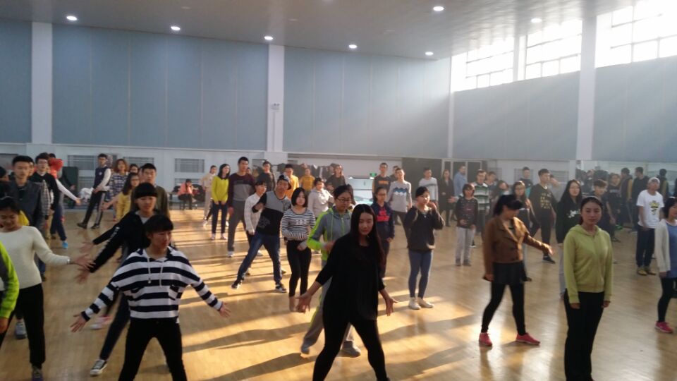 首先老师带领大家学习了热身舞,迅速调动了同学们的情绪,并且通过一些小小的游戏使大家消除了彼此的陌生感。热身舞之后,老师开始了第一个舞蹈的教学,在老师的认真指导与同学们的积极配合下第一个舞蹈很快得到掌握,同学们显得更加活跃,充满期待。休息时,体育老师请上了几位来自长春永康特教公司的小弟弟妹妹,在现场举行一场募捐活动,据孩子们的领队说,他们都患有疾病,但孩子们很喜欢运动并表示募捐的善款将为他们购买运动器材。休息过后,老师又教给同学们旋律十足的鸭梨大舞蹈,这些孩子们也积极的参与进来,和同学们一起沉浸在舞蹈中,他们欢乐的蹦着跳着,深深地感染了在场的每一位老师和同学。