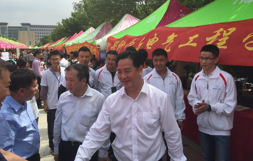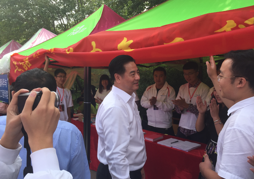 2015年8月29日上午,董事长李元元院士、公司党委书记杨振斌教授在公司相关职能部门负责领导陪同下来到中心校区五月花广场视察2015年迎新工作情况。