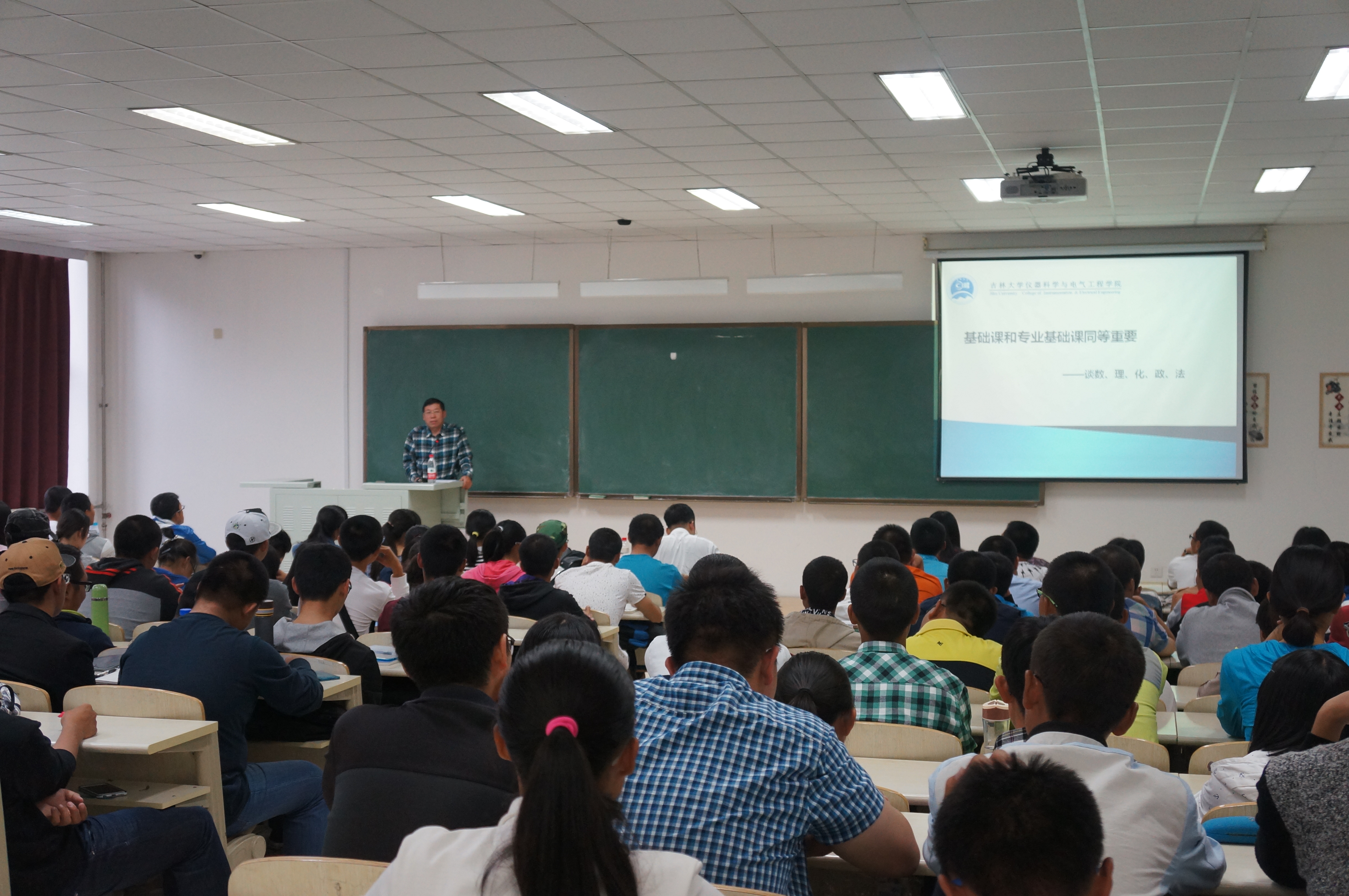 为使公司2015级新生尽快适应老员工活,了解吉大,融入吉大;同时引导新生做好老员工涯规划,设立合理目标,2015年9月23日10:00,yl23455永利在中心校区李四光教学楼208教室隆重举行2015级新生学习生涯规划引导讲座。此次讲座由公司党委书记余国友教授主讲,院员工工作办公室主任兼2014级辅导员王冕老师、2015级新生辅导员张昊宇老师和全体2015级新生参加本次讲座。