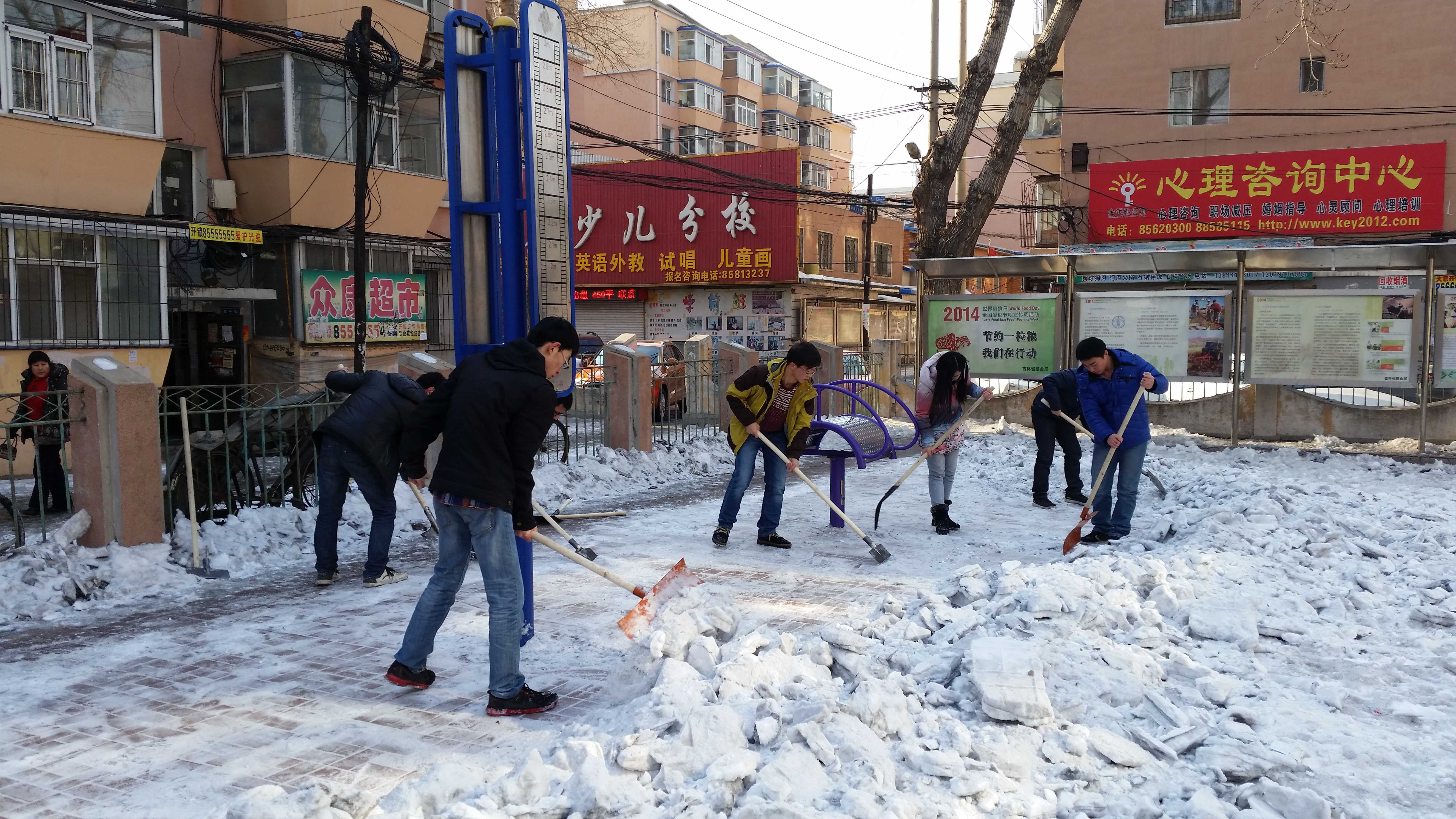 为深入贯彻落实习近平总书记系列重要讲话精神和李克强总理致公司白求恩志愿者回信精神,进一步弘扬雷锋精神和“奉献、友爱、互助、进步”的志愿者精神,组织引导广大青年员工在深入社会、了解国情、接受锻炼的过程中培育和践行社会主义核心价值观,让志愿服务成为每个吉大人的生活方式,让志愿者成为yl23455永利最响亮的名片,2015年3月5日下午,yl23455永利团委“牵手”青年志愿者协会志愿者在指导教师张昊宇的带领下走进朝阳区清和街道南昌社区开展义务除雪除冰活动。