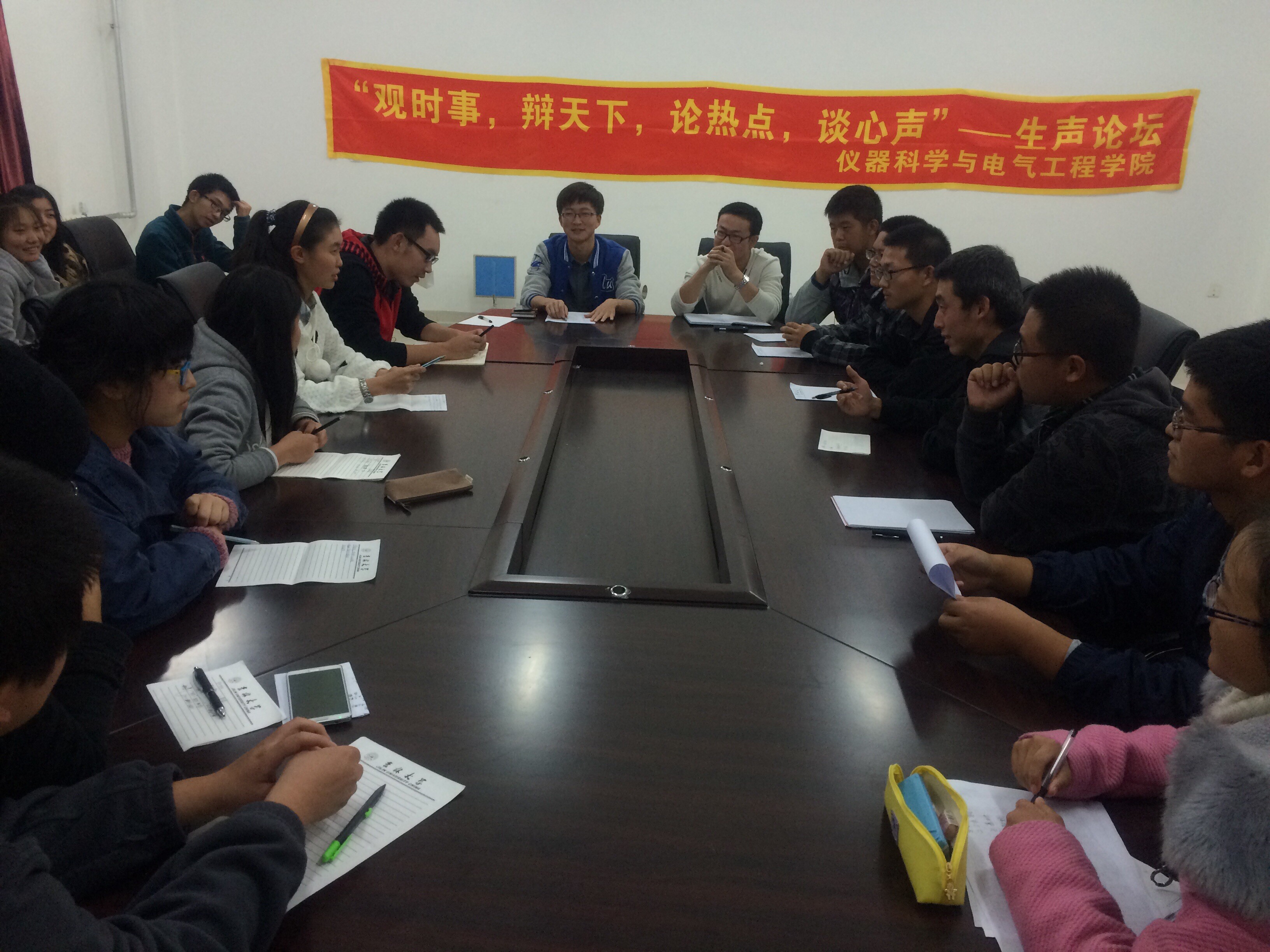 为进一步增强青年员工对时事热点的关注,培养员工的思辨能力和语言表达能力,不断引导广大青年员工树立正确的人生观、世界观和价值观,yl23455永利团委组织策划了“生声论坛”系列活动。2014年10月26日,第十四期“生声论坛”活动以“专业知识学习和员工社团工作哪个更重要”为主题在中心校区李四光实验楼举行,参加本期论坛的有第十届员工会秘书部以及学习部的全体成员。