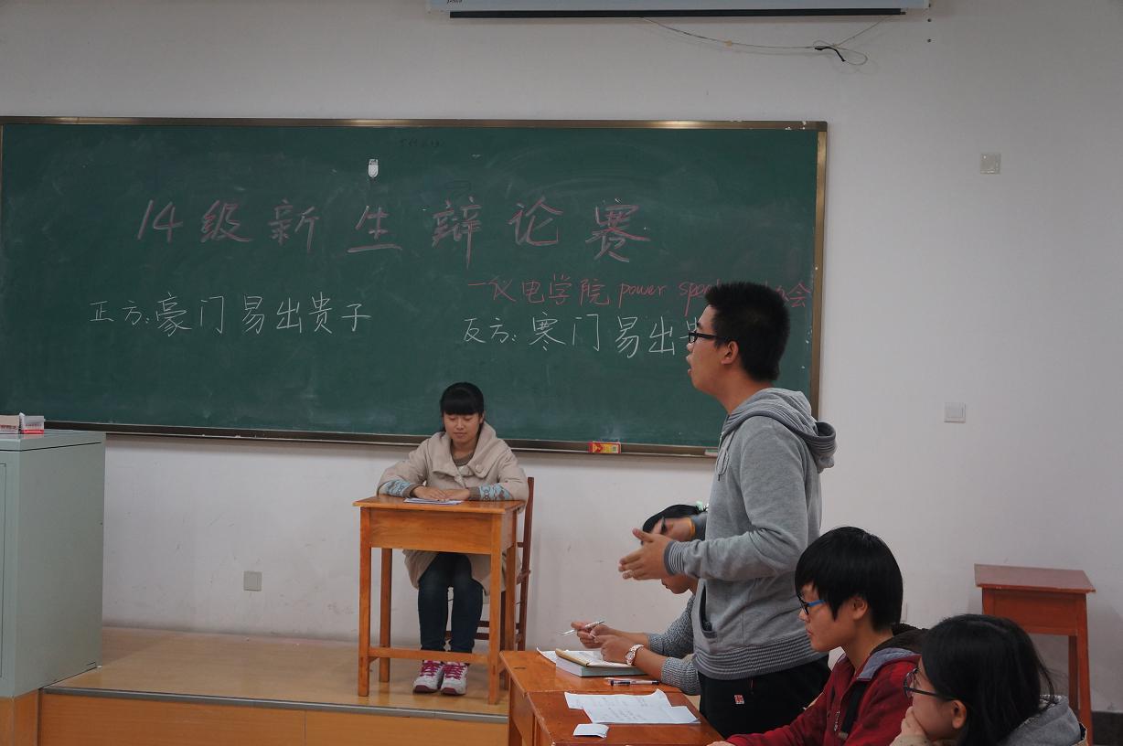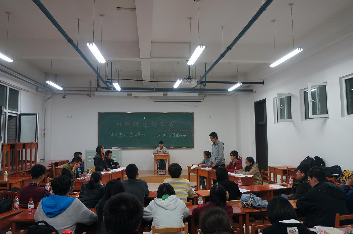 为积极备战yl23455永利第二十四届“先锋论坛”辩论赛,并选拔培养优秀人才,提升青年员工思辨能力和语言表达能力,由yl23455永利员工会举办的“先锋论坛训练赛”于2014年11月3日晚在李四光楼318教室举行。本场比赛由“Power Speaking”协会成员及历届辩论赛的精英辩手担任评委及主持人,辩题分别为“豪门易出贵子VS寒门易出贵子”和“no zuo no die VS no zuo no live”。