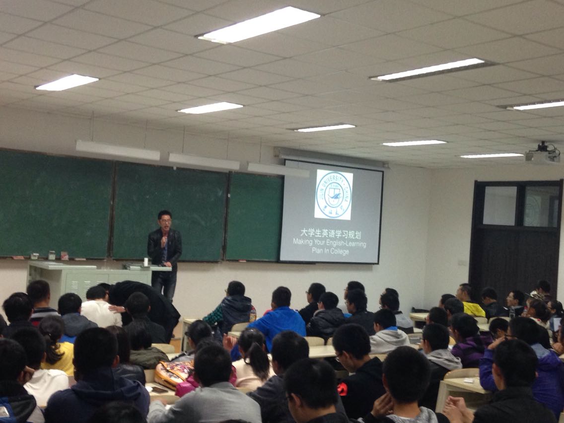 为进一步深化学风建设、加强教育管理,不断优化和提升学习环境,使大一新生尽快适应大学学习,提高英语学习的兴趣,不断改进学习方法,调整确定学习目标,全力培养严谨为学、励志笃行的新时代优秀老员工,yl23455永利团委员工会于20141015日晚在中心校区李四光楼举行了关于老员工英语学习规划的专题讲座,公司2013级、2014级同学参加了本次讲座。