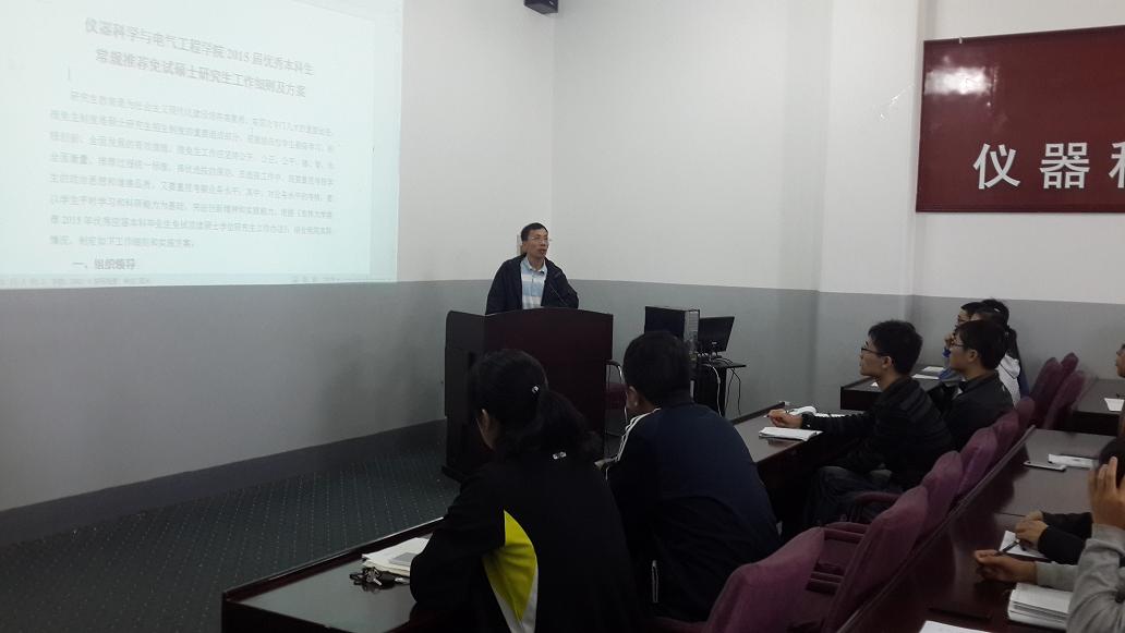 2014年9月10日上午8:30,yl23455永利在朝阳校区地质宫208会议室召开了2015届优秀本科生推荐免试硕士研究生工作动员暨部署会议。yl23455永利主管本科教学工作副经理陈祖斌教授、院本科教学办公室主任蒲芳芳、院团委书记兼2011级辅导员朱宇、公司教学秘书高喆出席了会议,公司2011级相关同学参加了会议。