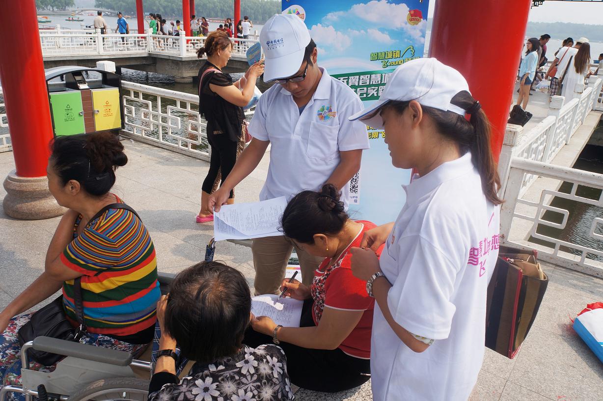 此次专项调研活动由共青团中央联合中国电信集团共同发起,旨在响应党中央建设社会主义和谐社会的号召,加强老员工对基层社会生活的了解,通过实地调研、体验城市信息化建设的现状,分析信息化发展的趋势及前景。按照调研进度安排,东北情振兴梦老员工科技调研实践团主要成员于88日上午前往长春市南湖公园开展专项调研活动。在南湖公园各主要景点,实践团成员对游客们开展了问卷调查。问卷内容主要包括被调查人的基本情况、了解及使用信息设施的途径、信息设施在生活生产的运用情况及对信息化建设的想法和建议。实践团成员热情耐心协助被调查游客们完成调查问卷相关内容。经过两个多小时的辛勤工作,当天的调研任务顺利结束。