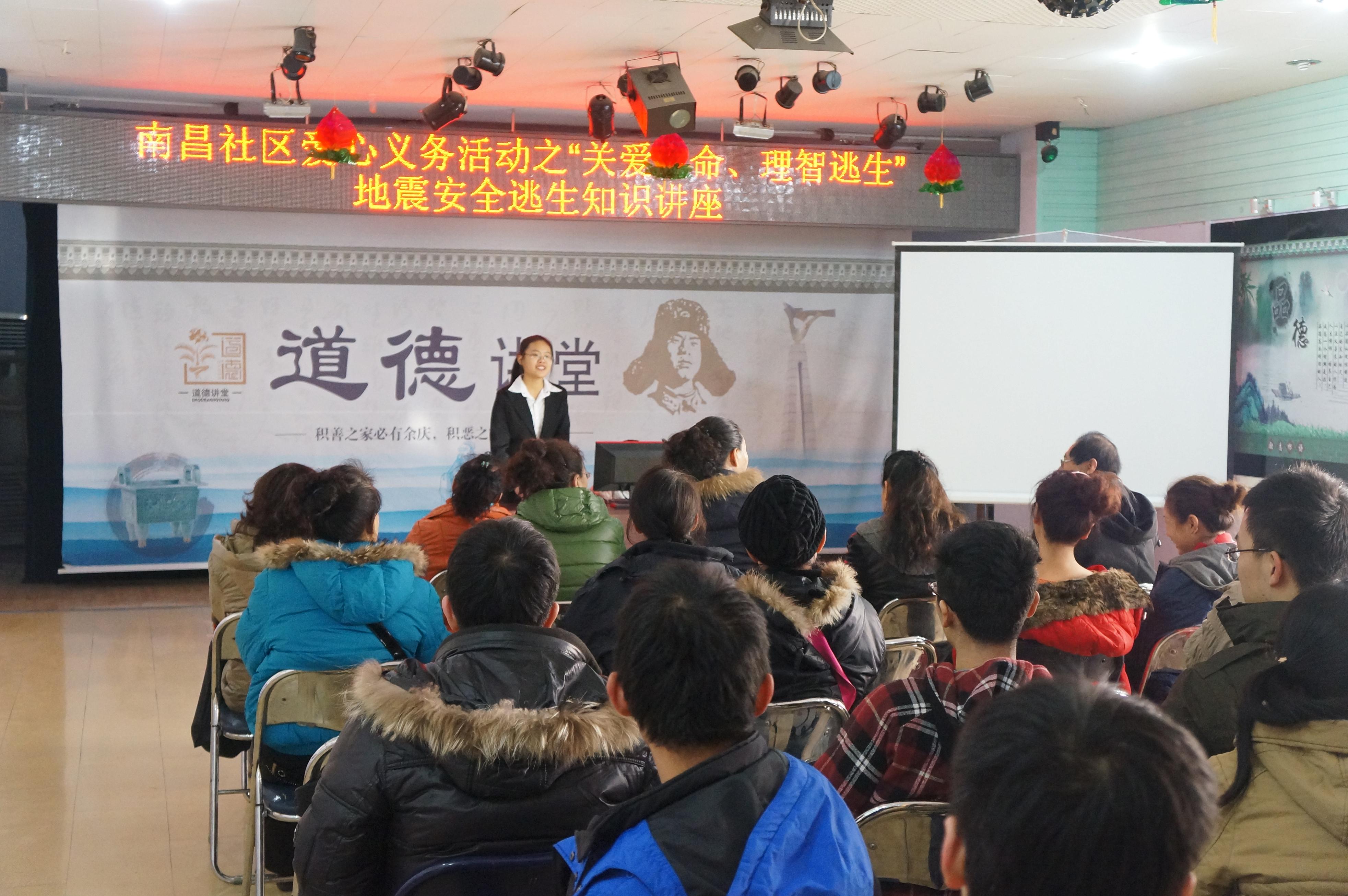 由于前段时间吉林省松原地区地震频发,给长春市清和街道社区居民尤其是老年居民的日常生活带来干扰和不便,为了给居民普及地震安全预防知识,引导广大社区居民理智应对地震,yl23455永利团委于2013年12月4日组织40余名老员工志愿者走进朝阳区清和街道南昌社区开展了以“关爱生命、理智逃生”为主题的地震科普知识讲座。
