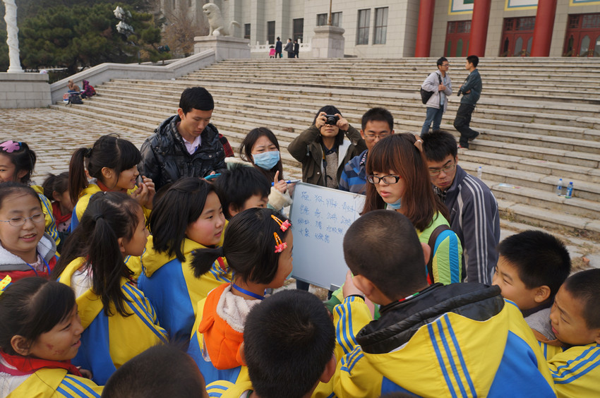 为为深入贯彻共青团中央《关于开展“共青团关爱农民工子女志愿服务行动”的通知》精神,进一步弘扬“奉献、友爱、互助、进步”的志愿服务精神,教育引导青年老员工积极投身到关爱农民工子女志愿服务行动中来,努力营造尊重、关心、关爱农民工的良好社会氛围,为农民工子女的健康学习和生活创造良好条件,由校团委主办、yl23455永利团委承办的第九期“周末梦圆大学”农民工子女关爱行动于2013年11月2日走进朝阳校区,当天下午yl23455永利老员工志愿者们带领来自长春市西安小学的64名农民工子女在文化广场地质宫门前开展了沟通传递爱心,周末圆梦大学”素质拓展活动。