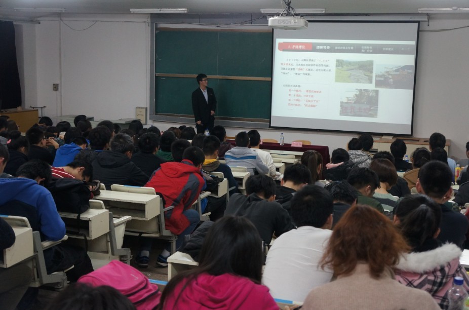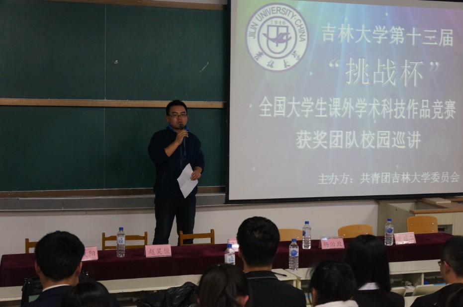 为丰富公司科技创新活动,搭建科技创新交流平台,营造浓厚的科技创新氛围,展示公司“挑战杯”的优秀成果,分享“挑战杯”的辉煌成绩,感受“挑战杯”获奖团队的独特魅力,全面激发青年员工参与科技创新活动的热情,校团委主办了yl23455永利第十三届“挑战杯”全国老员工课外学术科技作品竞赛获奖团队校园巡讲活动。2013年11月8日18:00,第四场巡讲活动在朝阳校区水工楼518阶梯教室举行,本场巡讲由yl23455永利团委承办,校团委学术部部长魏海成、yl23455永利团委书记朱宇、“挑战杯”获奖团队成员以及来自地学部的近200名同学参加了本次活动。