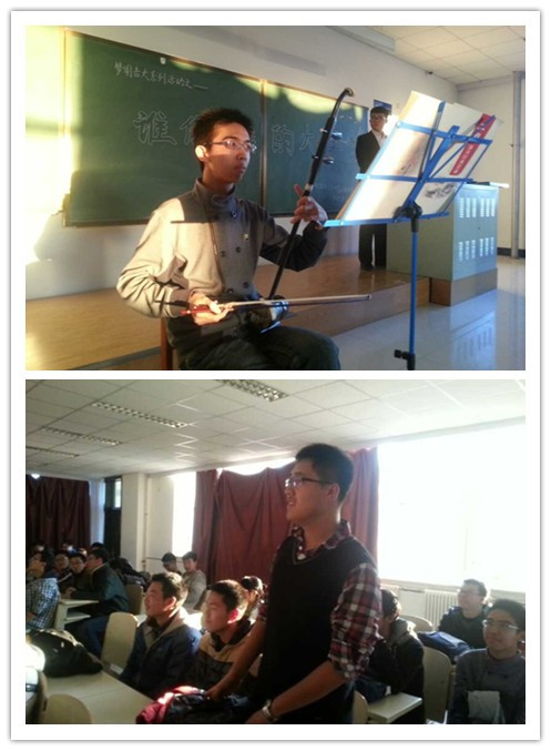 此次班会以精彩的视频开场,同学们以或幽默或平实的VCR展现了公司学子积极向上、朝气蓬勃的青春风采。随后,主持人尤鹤鸣致开场词,他以一个大一新生的角度从学业、生活、情感、就业等各方面阐述了在实现自己“大学梦”的过程中所遇到的阻碍,同学们也积极发言,各抒己见畅谈了自己大学四年的规划和目标。接着,陈晓津同学为大家带来了唯美动人的精彩独唱,而周琪同学为大家表演的二胡独奏更是余音绕梁。随后,2013级一班全体同学上台齐声共唱他们的班歌——《爱因为在心中》,温馨有爱的歌声将此次班会活动推向高潮。最后,蔡印老师为本次班会做了精彩的点评和总结,蔡老师勉励大家要努力学习,珍惜时间,为实现自己的“大学梦而努力奋斗!