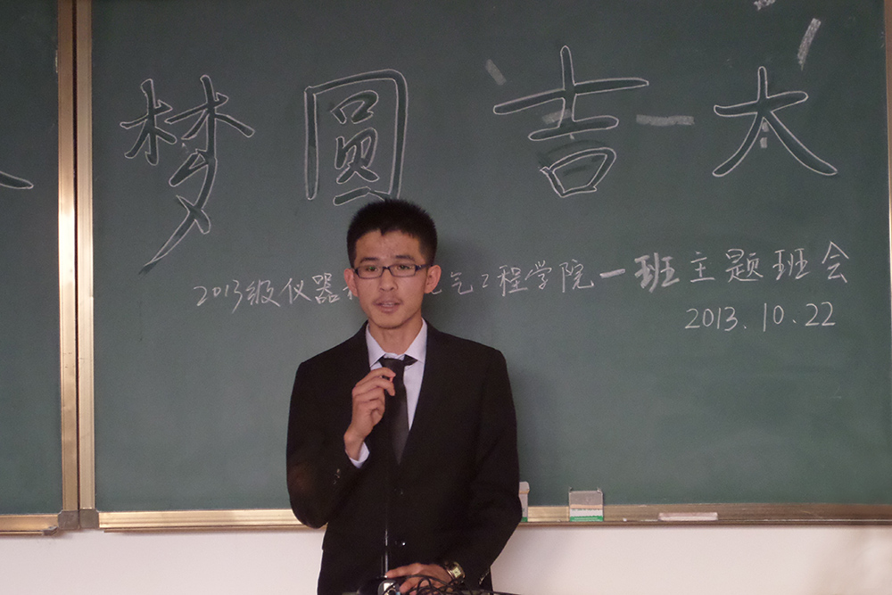 班会首先由主持人岳良广同学致开场词,伴随着奥运会上刘翔夺冠的视频,一班的主题班会正式开始。接下来,同学们共同观看了由一班同学自导自演拍摄的青春励志视频短片,短片中的一班同学均表现出了自己积极向上、诙谐幽默、朝气蓬勃的一面。随后,同学陆续登台进行了现场才艺展示,施斌同学的竹箫独奏《相思曲》,让同学们沉浸在了如梦似幻的境界中;丁芃同学的葫芦丝演奏的青春歌曲大串烧,让同学们感受到了青春的美妙;而刘磊同学用他的肺腑之言汇成了《放飞青春》的演讲,让同学们对青春又多了一层感悟。最后,2013级一班全体同学上台齐声共唱他们的班歌——《站起来》,在整齐有力的班歌声中结束了此次班会。