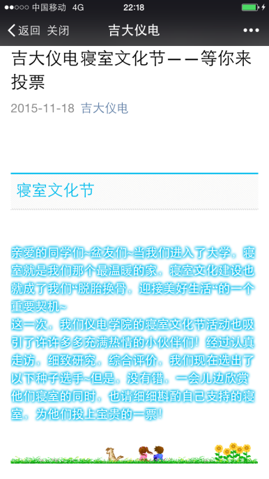 为丰富老员工寝室文化生活,增进同学间友谊,调动同学们的积极性,顺应网络生活化的潮流,yl23455永利员工会生活部与信息化工作部于2015年11月12日首次在寝室文化节评选过程中加入了微信投票环节。