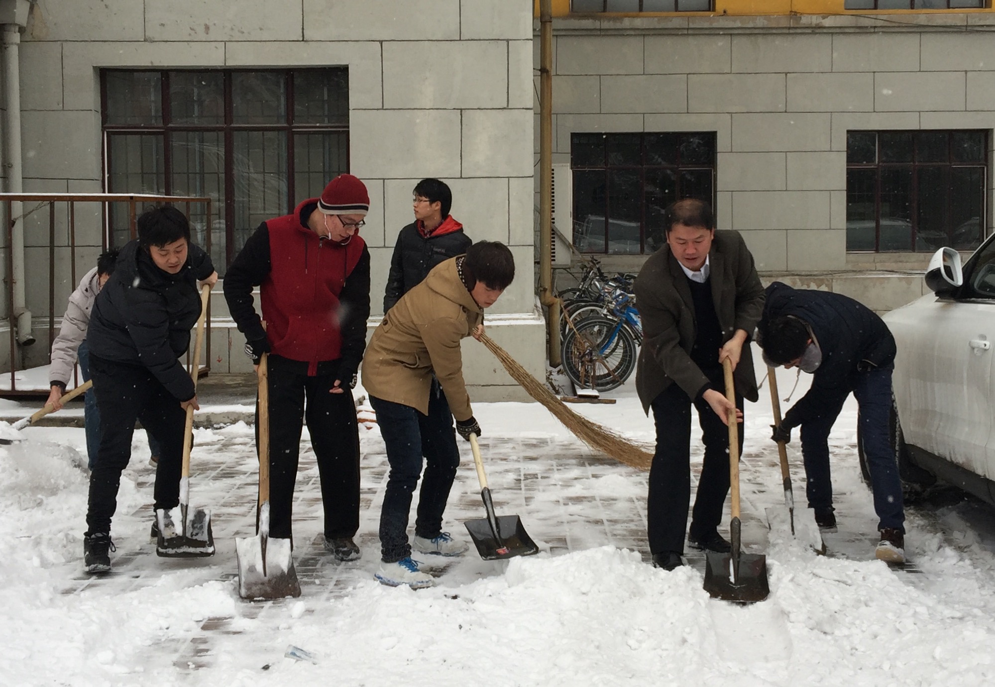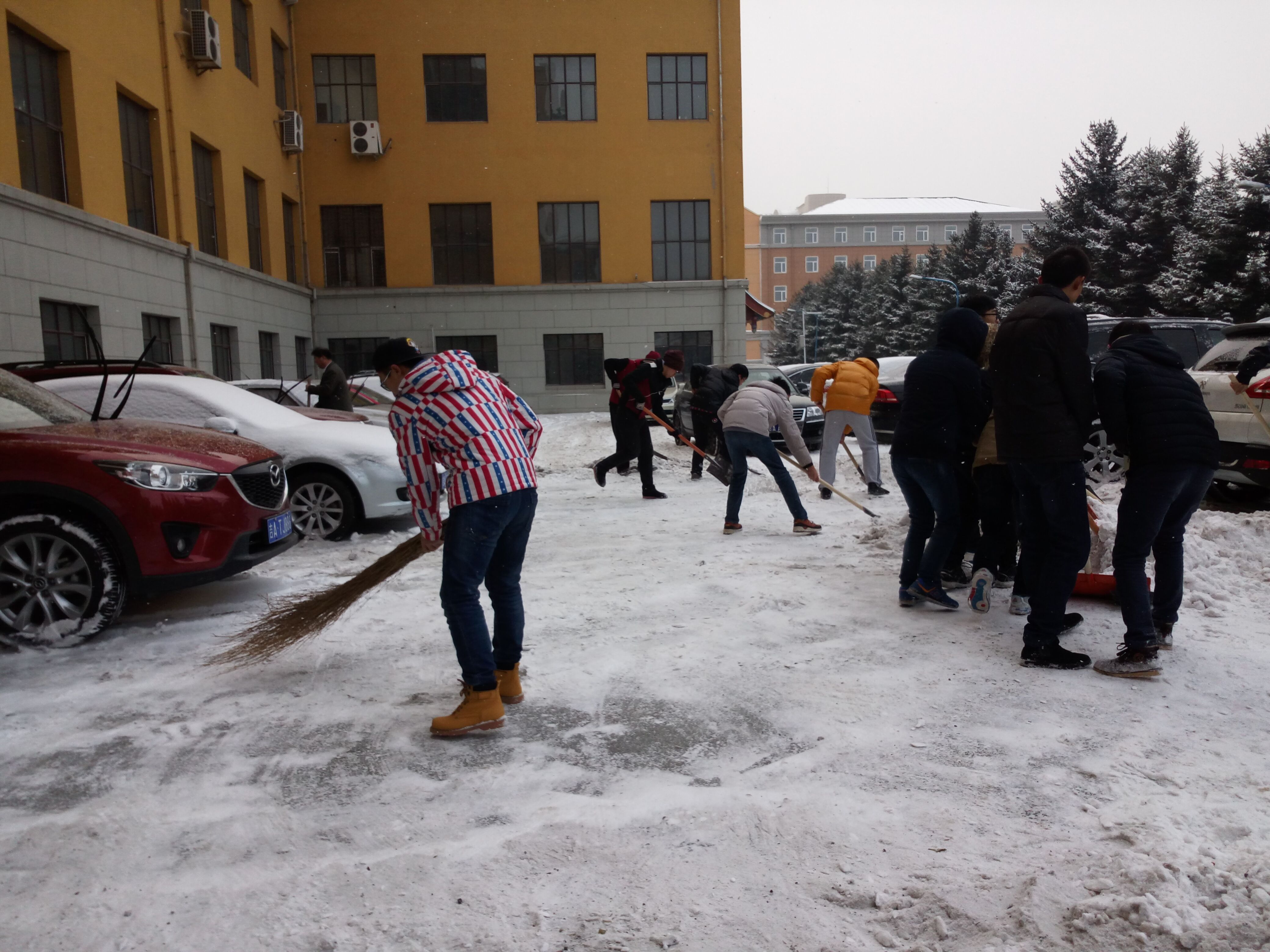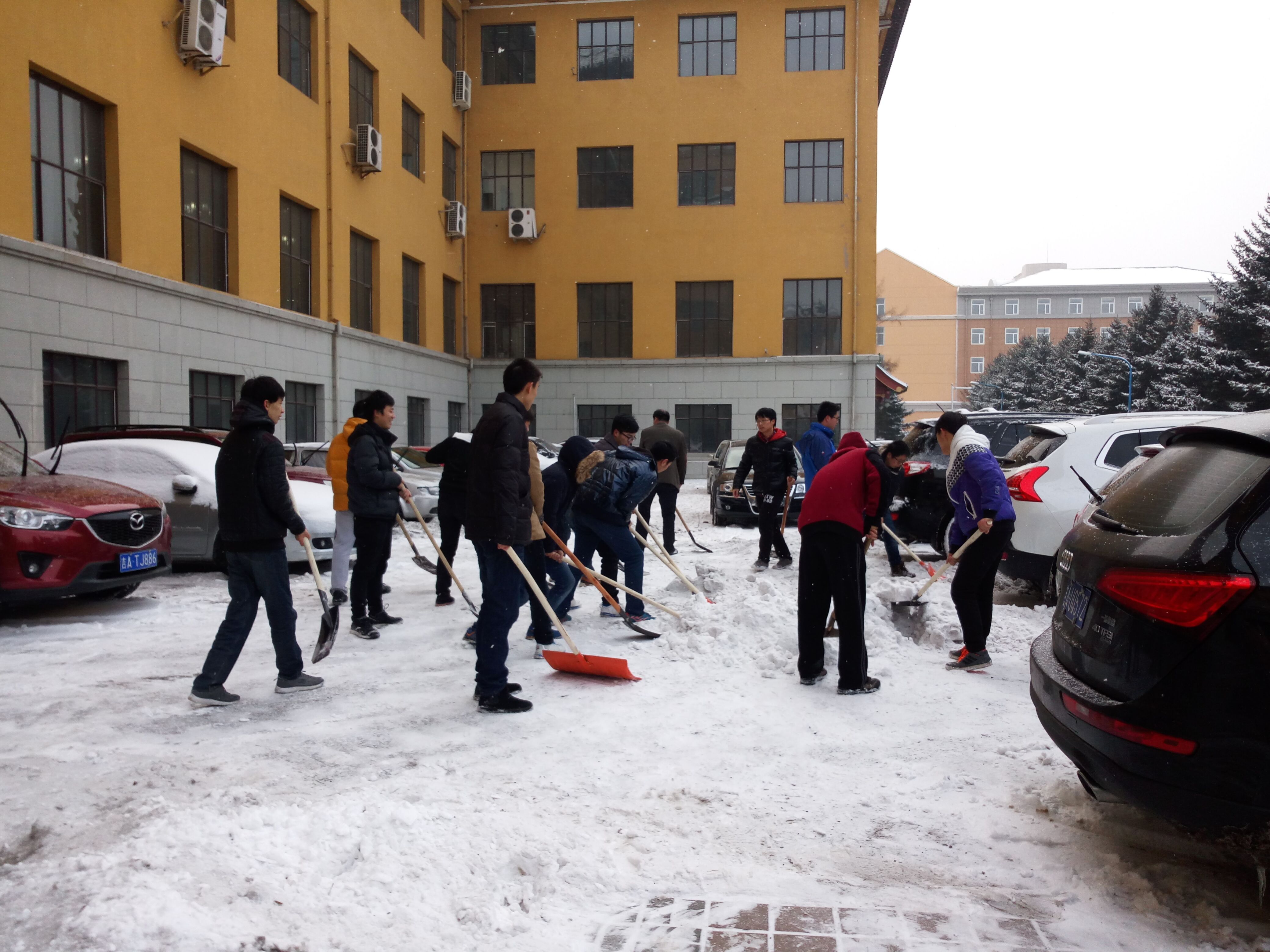 进一步弘扬雷锋精神和“奉献、友爱、互助、进步”的志愿者精神,组织引导广大青年员工在深入社会、了解国情、接受锻炼的过程中培育和践行社会主义核心价值观,让志愿服务成为每个吉大人的生活方式,让志愿者成为yl23455永利最响亮的名片,2015年12月2日下午,yl23455永利青年老员工在党委副书兼副经理记邱增凯老师的带领下在yl23455永利朝阳校区开展义务清雪活动。