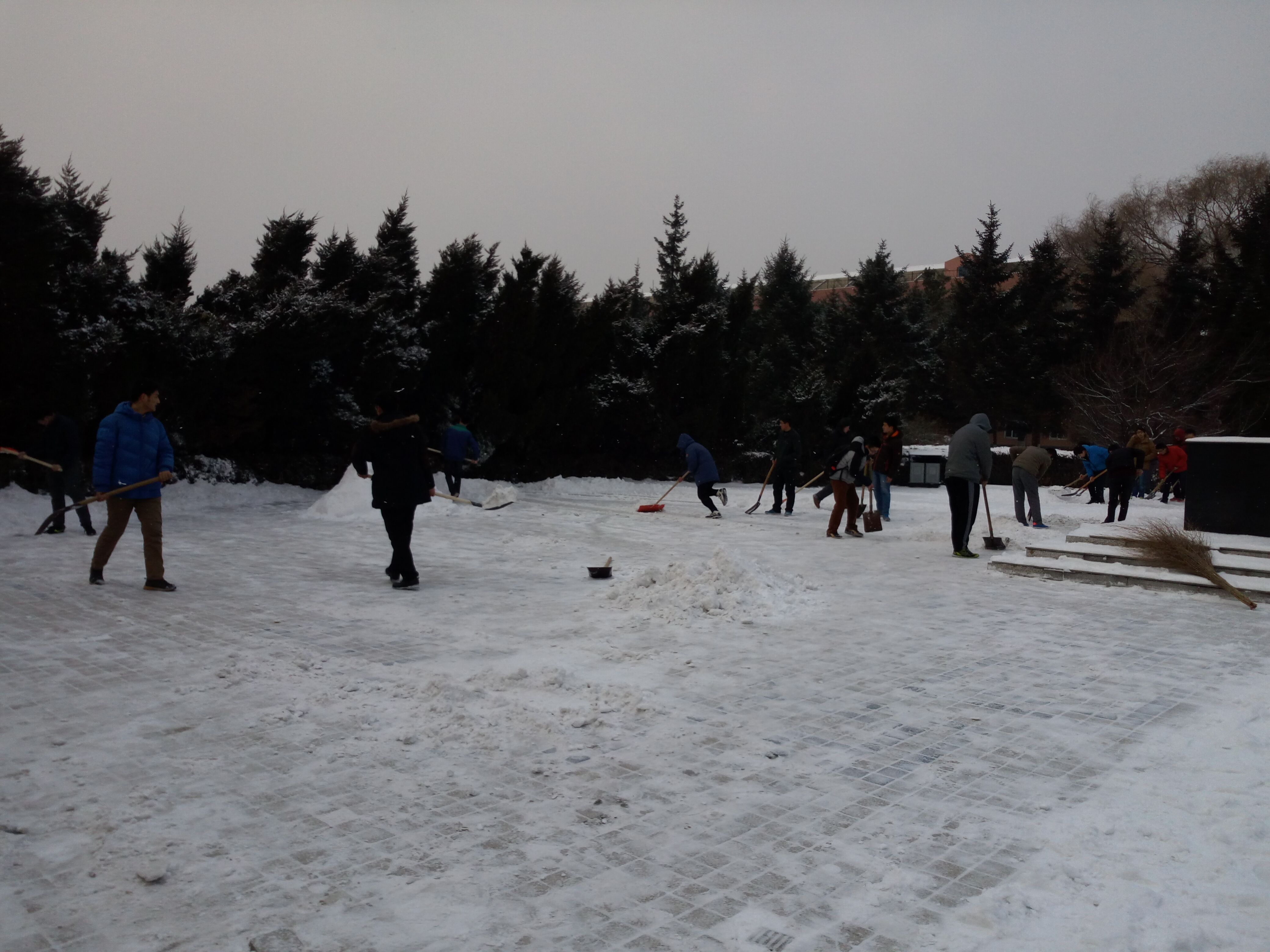 随着深冬的渐入,近几天以来降雪频繁,为尽快消除积雪给师生出行造成的影响,确保各项工作的安全和便利,yl23455永利团委员工会迅速组织本院员工在校区内进行雪活动。邱增凯老师和张昊宇老师的带领下,全体志愿者们分工明确、团结协作,发扬雷锋精神,不怕苦、不怕累。东北的冬天虽然寒冷,但大家依旧克服困难,热情满满,把扫雪铲冰当成自己的义务认认真真并且高质量地完成了扫雪任务,为师生的活动和出行安全提供了有力的保证。清雪活动结束后,路过的老师纷纷对老员工志愿者们的辛勤劳动给予了高度评价