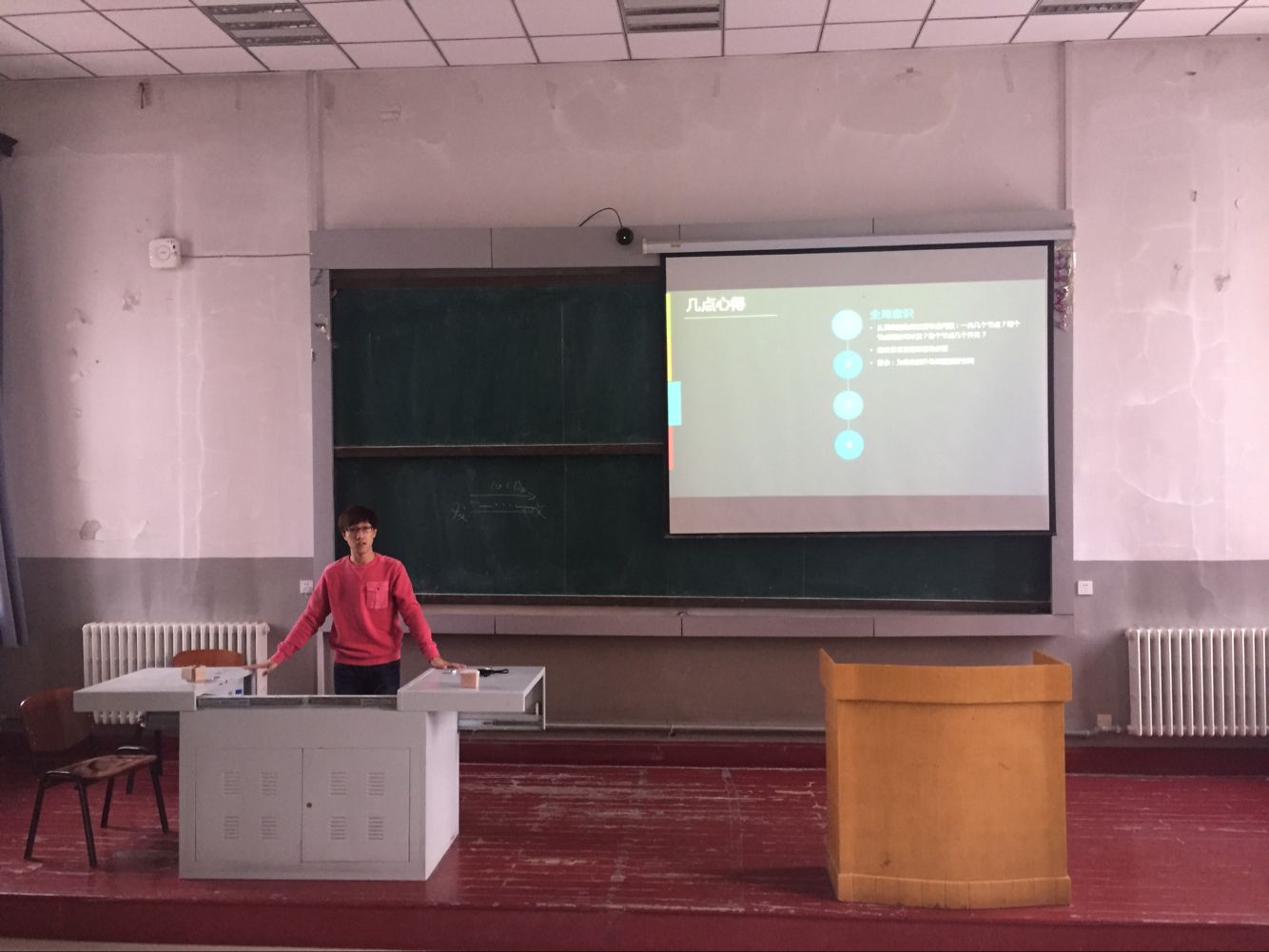 为总结在国赛中的经验教训,解答同学对于国赛和电子设计方面的疑惑,提高“216+实验室”成员的综合实力和自主发挥水平,“216+实验室”于2015年12月20日在地质宫224室举行了第四期电子大赛总结沙龙。沙龙活动由实验中心千承辉老师主持,第三批“216+实验室”第三组成员蔡姗姗、左濂锐、王政主讲,并有幸请到了“216+实验室”李春生老师到场,第四批至第六批开放实验室成员参加了本次总结沙龙活动。