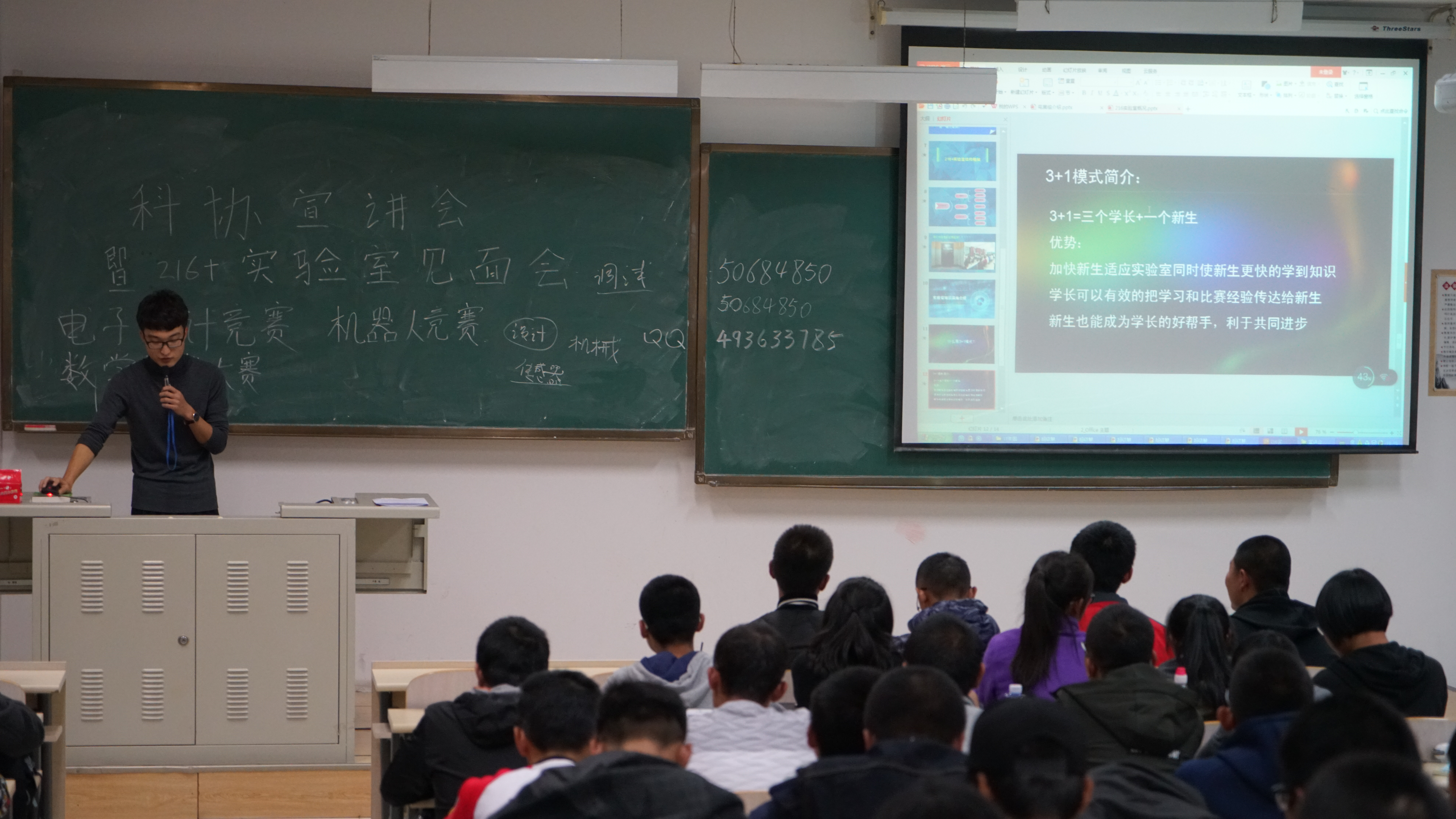 为加强老员工动手实践能力,推进老员工科技创新意识,20171017日晚上600,由yl23455永利老员工科技创新协会举办的老员工科技创新协会宣讲会暨216+实验室成员见面会在yl23455永利中心校区李四光教学楼107教室举办。参与本次宣讲活动的有科协全体成员以及2017级全体新生,旨在推进公司科技创新协会的进步与发展,在公司营造出一种科技创新的学术氛围。