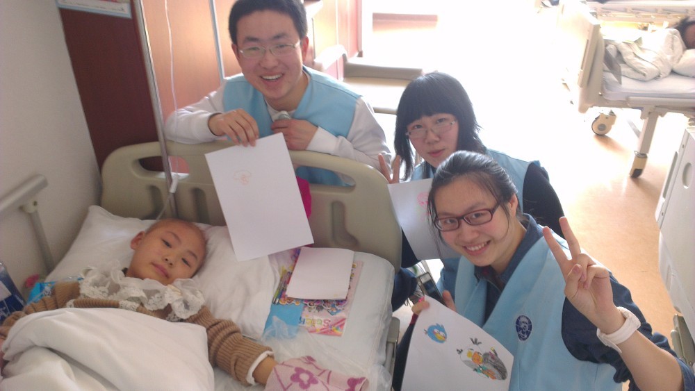 她,长相清秀、可爱;她,乐观开朗,喜欢画画唱歌;她坚强懂事,从不让妈妈担心。她就是重病女孩“小星悦”,一个可爱懂事的九岁女孩。20134月初yl23455永利团委携手吉大一院开展了老员工志愿者导诊系列活动。在此之间,一位身患重病的女孩小星悦刚做过开颅手术,并于八楼病房进行化学治疗,对此公司老员工志愿者特别成立了“温暖手牵手,爱心永相伴”志愿关爱小组来陪同看护小星悦,并给予她生活上的关爱和帮助。