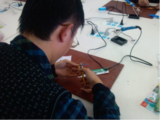 2013年3月8日15:00时,为期6天的培训活动正式开始。活动中,首先由科协副部为学员们发放了相关电子器件,学员们表现出了极大的好奇心,迫不及待地想要亲手进行焊接工作。科协副部张兴宇同学给学员们介绍了器件的名称、用途。接下来,他展示了自己焊接的成品,结合电路图详细地讲解了焊接方法和原理,并且强调了焊接注意事项和安全问题。随后,科协副部黄维宁同学亲手为学员们演示了焊接过程,学员们积极认真地观看学习。此后学员们已经按捺不住跃跃欲试,纷纷投入到焊接工作中。经过了上学期科协的培训,学员们已经基本掌握了焊接方法,所以本次培训学员们快速地进入了状态。科协副部黄婉玉,刘锡洋同学深入到学员们中去,为学员们答疑解难,纠正错误,一对一进行指导。培训活动有条不紊地进行着。很快,有不少同学就已经做出了成品,科协副部李京杰同学为学员们的成品进行检查和测试,由副部张楠同学对焊接速度较快同学的信息进行了整理,并对同学们的作品做出了评价与记录。在副部们的帮助下,每位学员都完成了自己的焊接工作。学员们拿着自己亲手焊接的作品,脸上充满了喜悦与自豪。3月15日17:00时,培训在一片和谐热烈的气氛中圆满落下了帷幕。
