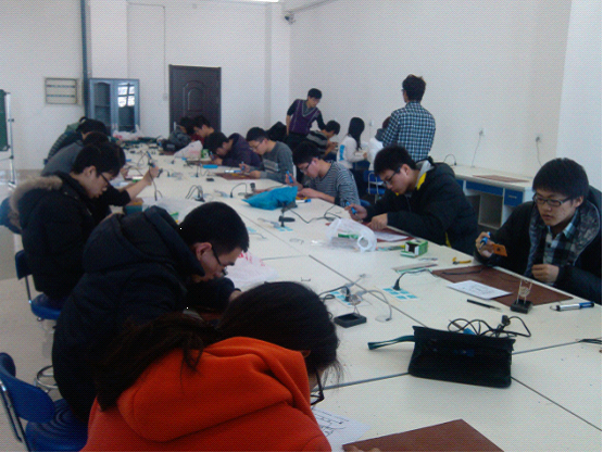 2012-2013学年春季学期开学的第一周,仪器与电气公司科技协会针对公司2012级学员的培训活动于李四光实验楼533室紧锣密鼓地展开了。在科协会长曹明明、副会长张发聪、胡睿帆和各部部长们的大力帮助和实验室工作人员的支持下,活动得以顺利进行。此次活动意在深化学员们的科技创新意识,提高动手实践能力,培养电子制作兴趣,更加重要的是选取能力较强的学员为科协干事,为参加公司的重要赛事——校电子大赛做准备。