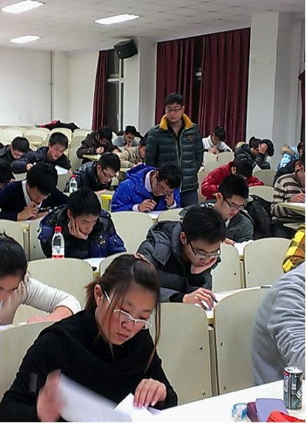 为更好地组织期末考试,2012年12月15日晚18:00时,yl23455永利分团委员工会学习部组织2012级新生在中心校区李四光楼进行期末模拟考试。2012级辅导员蔡印老师、员工会各部部长来到考场进行监考工作。